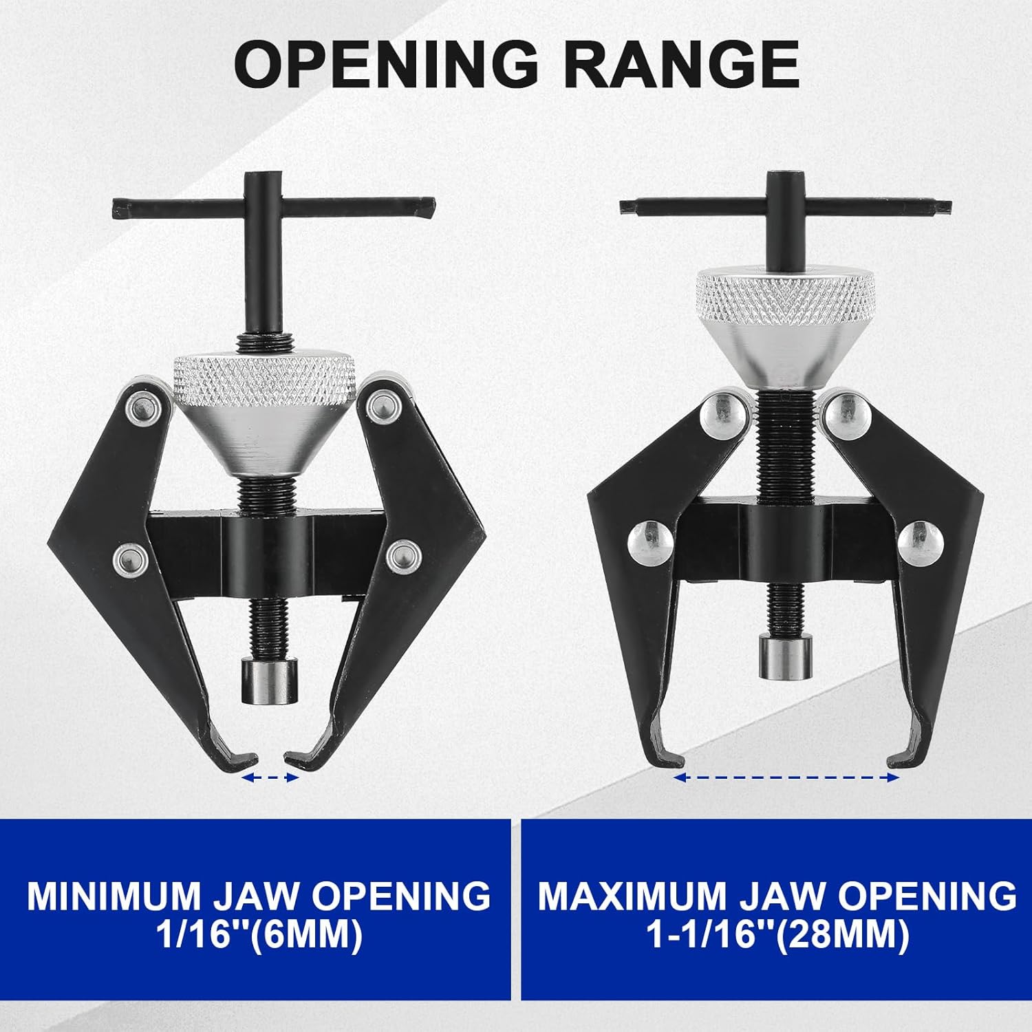 - Premium Quality: The battery terminal and wiper arm puller is made of 45 # carbon steel, strong metal with special heat treatment process, high hardness, corrosion-resistant forged and heat treated steel jaws, can be used for a long time. Jaw opening: 1/16" - 1-1/16" (6-28mm), Outer diameter:1-7/8" (48mm).