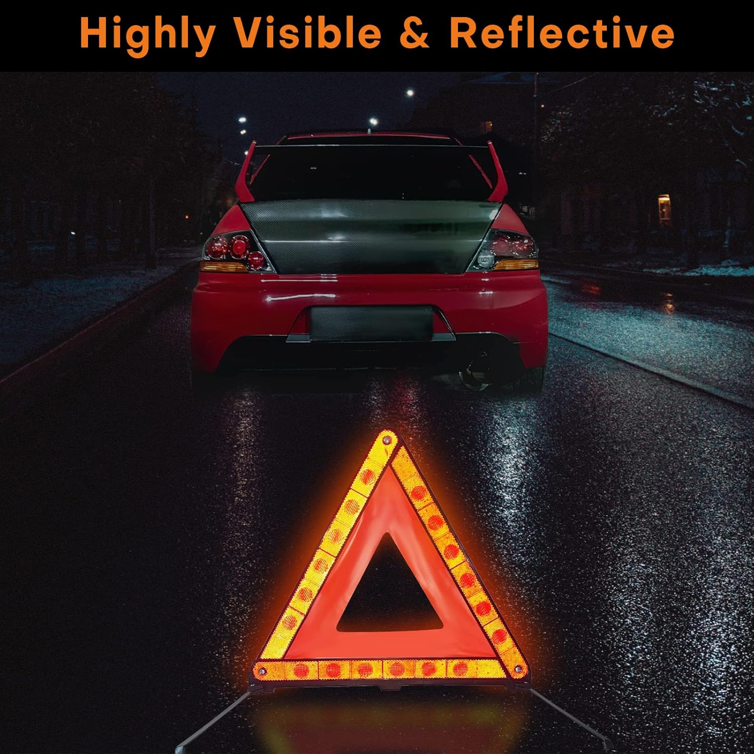 - Wide Application: The roadside reflective triangles are perfect for use in fog, rainy, snowy mud wind season and ideal for emergency situations. alerts motorists to roadside trouble day or night keeping you and your passengers safe.