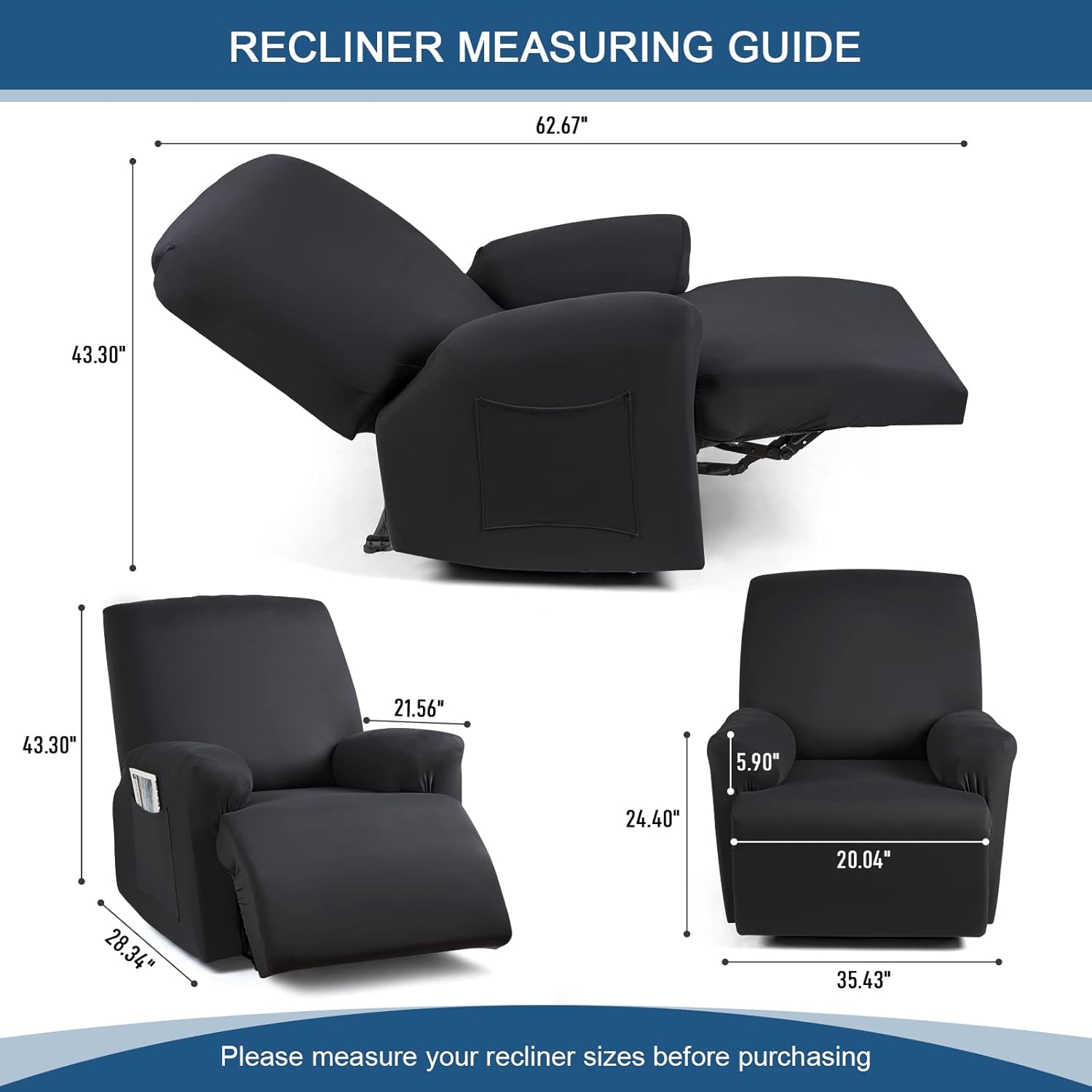 • 【EASY INSTALLATION】Our recliner chair cover is easy to install with the provided user manual. Simply tuck the extra fabric between the back and seat cushions for a smooth and wrinkle-free look. The elastic band at the bottom ensures a secure fit. The stretch fabric adapts to every nook and cranny of your rocking chair. The side pocket design provides convenient storage for small items.Or please refer our covers for recliner chair installation video.
