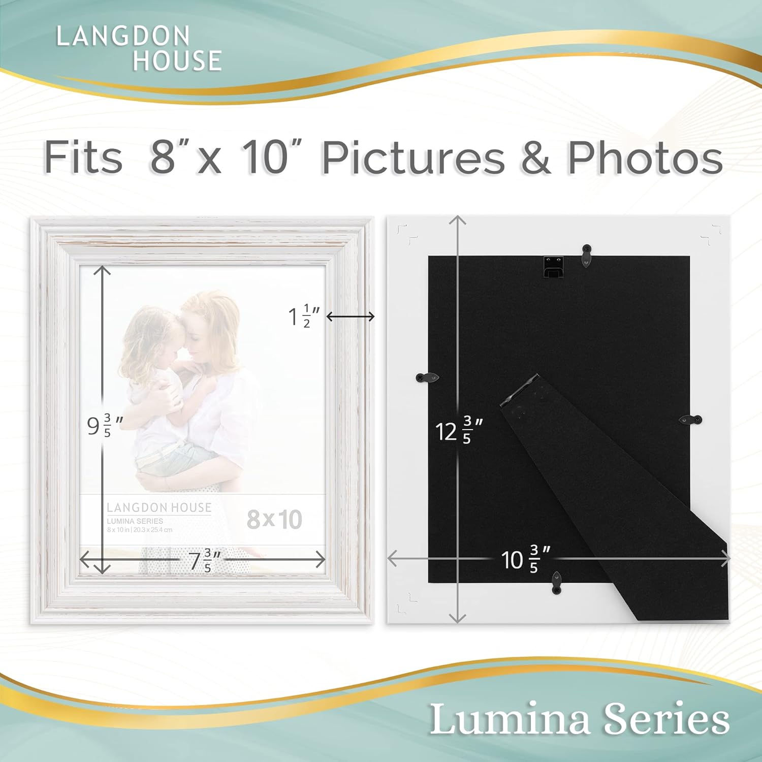 Langdon House 8x10 (20x25 cm) Real Wood Picture Frames (Weathered White - Gold Accents, 2 Pack), Wooden Photo Frame 8 x 10, Lumina Collection