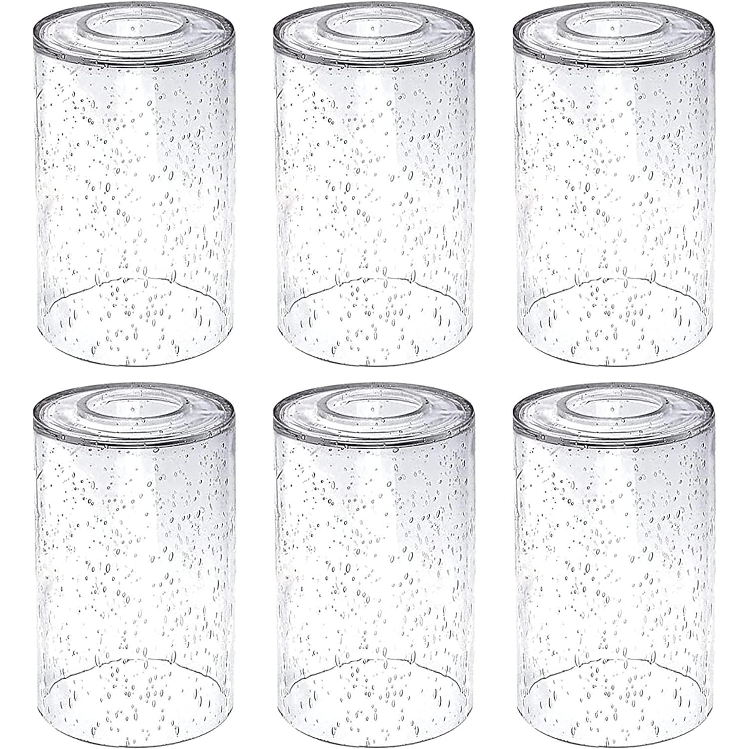 - Clear transparent seeded glass shade: Our 6 pack clear transparent glass shade globes replacement with a high light transmission design showcases the bulb clearly and creates a truly elegant style for your kitchen island, bedroom, living room