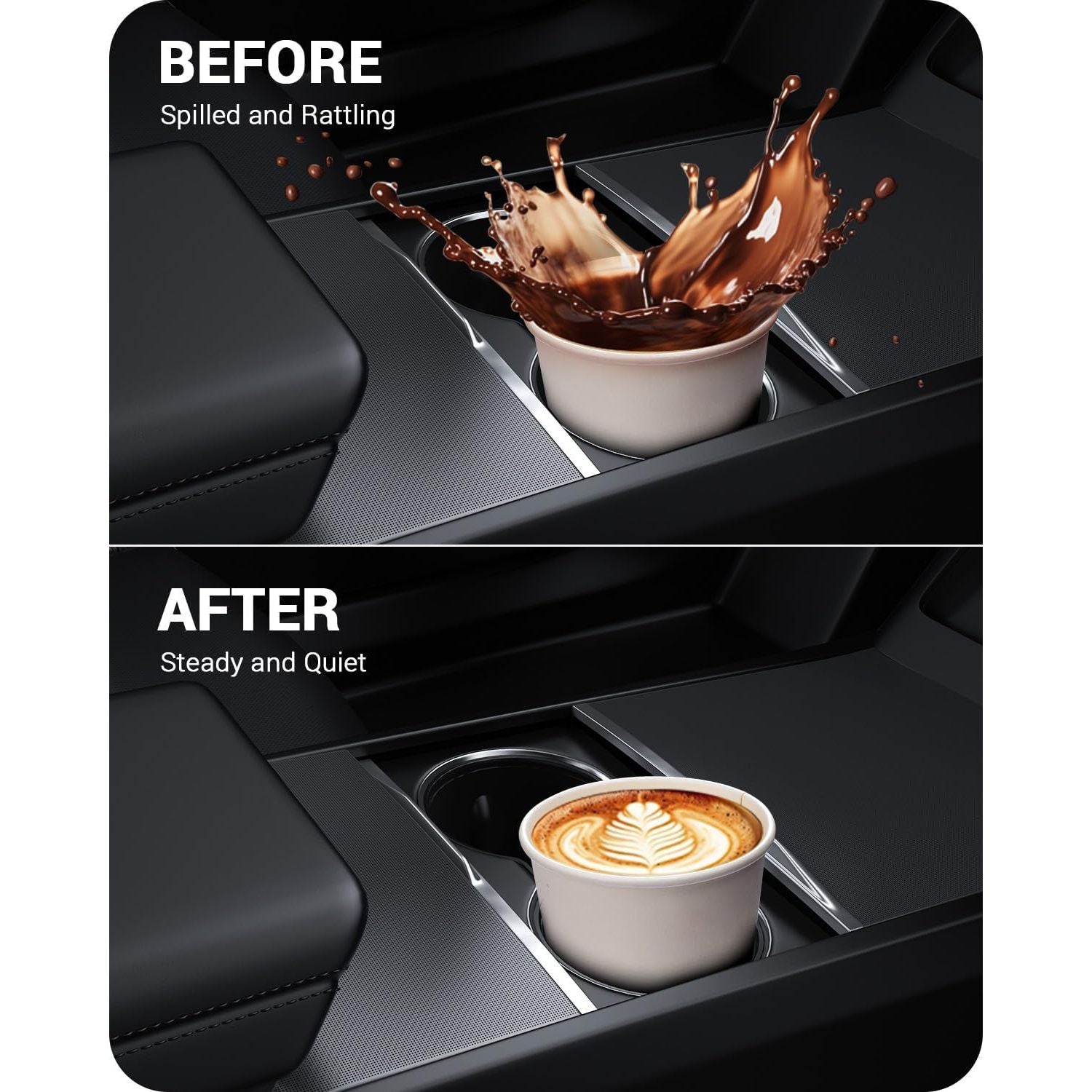 - Patented Design: Meticulously crafted for 2024 2025 Tesla Model 3 (Highland) and Tesla Model Y2026 2025 Refresh (Juniper). Employing cutting-edge technology, the precision-cut cup holder represents the pinnacle of engineering excellence, ensuring a 100% seamless fit between the cup holder and the center console slot.