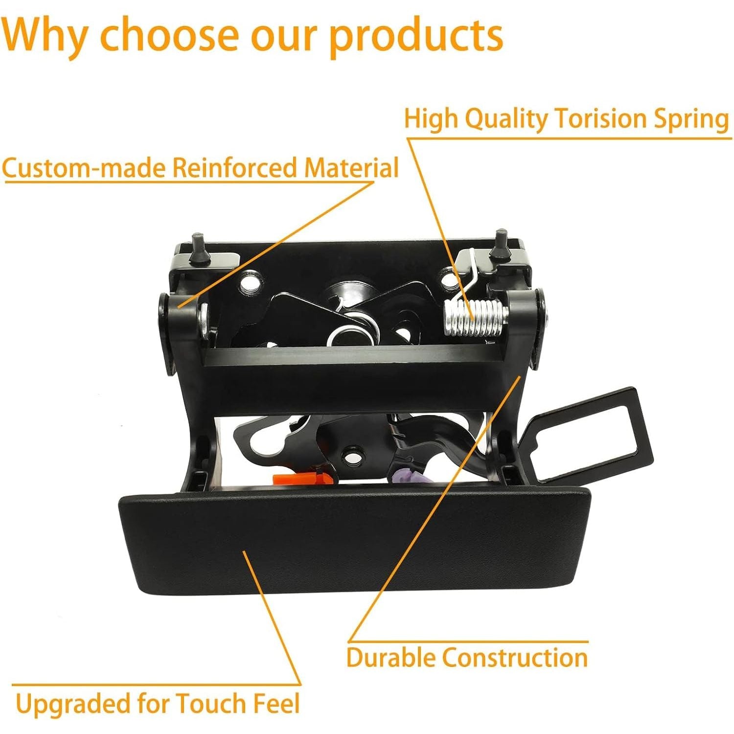 - 【Premium Quality】Our tailgate liftgate handle set is manufactured from custom-made reinforced ABS plastic and steel, solid and durable. Long life-span matters, that is why our door latche's bolt and spring are made of hardened steel for durable, long-lasting service life.