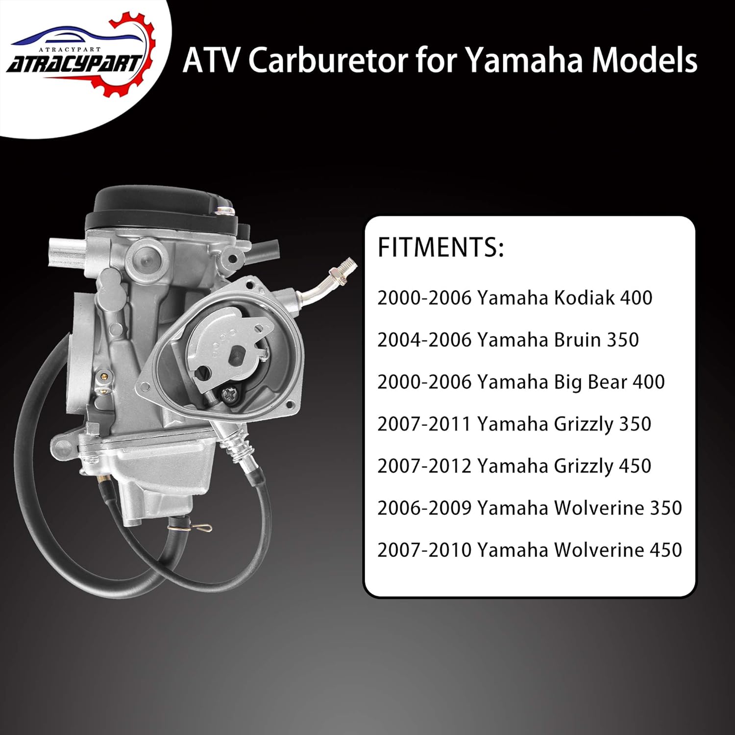- FITS: Yamaha 2x4 4x4 2WD 4WD models | 2000 2001 2002 2003 2004 2005 2006 KODIAK 400 & BIG BEAR 400 | 2004-2006 BRUIN 350 | 2007-2011 GRIZZLY 350 | 07-12 GRIZZLY 450 | 06 07 08 09 WOLVERINE 350 | 07-10 WOLVERINE 450. Please confirm the fitment in the product description below