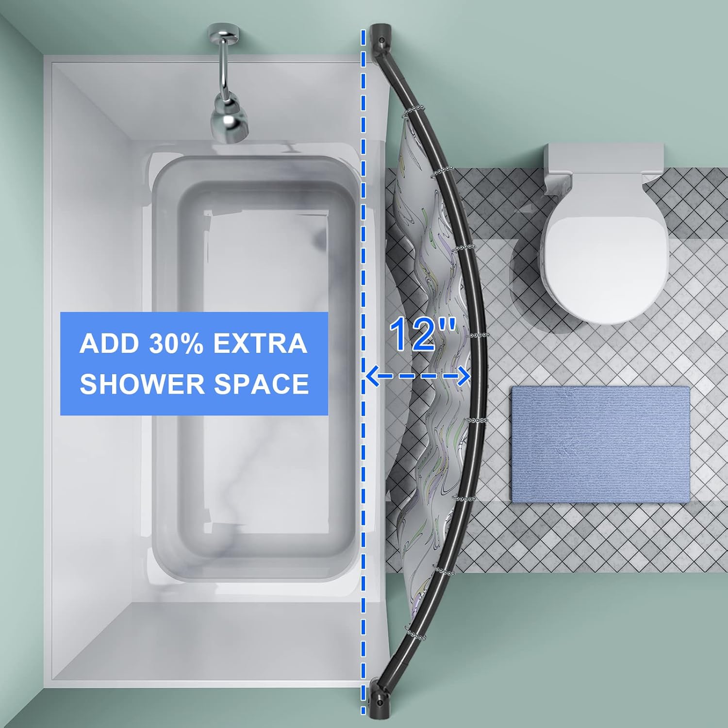 - 【More Space】 - When you lift up your elbows to wash your hair, you no longer need to touch a damp lining or shower curtain rod. The rod’s curved design adds 30% more space and makes your shower less claustrophobic.