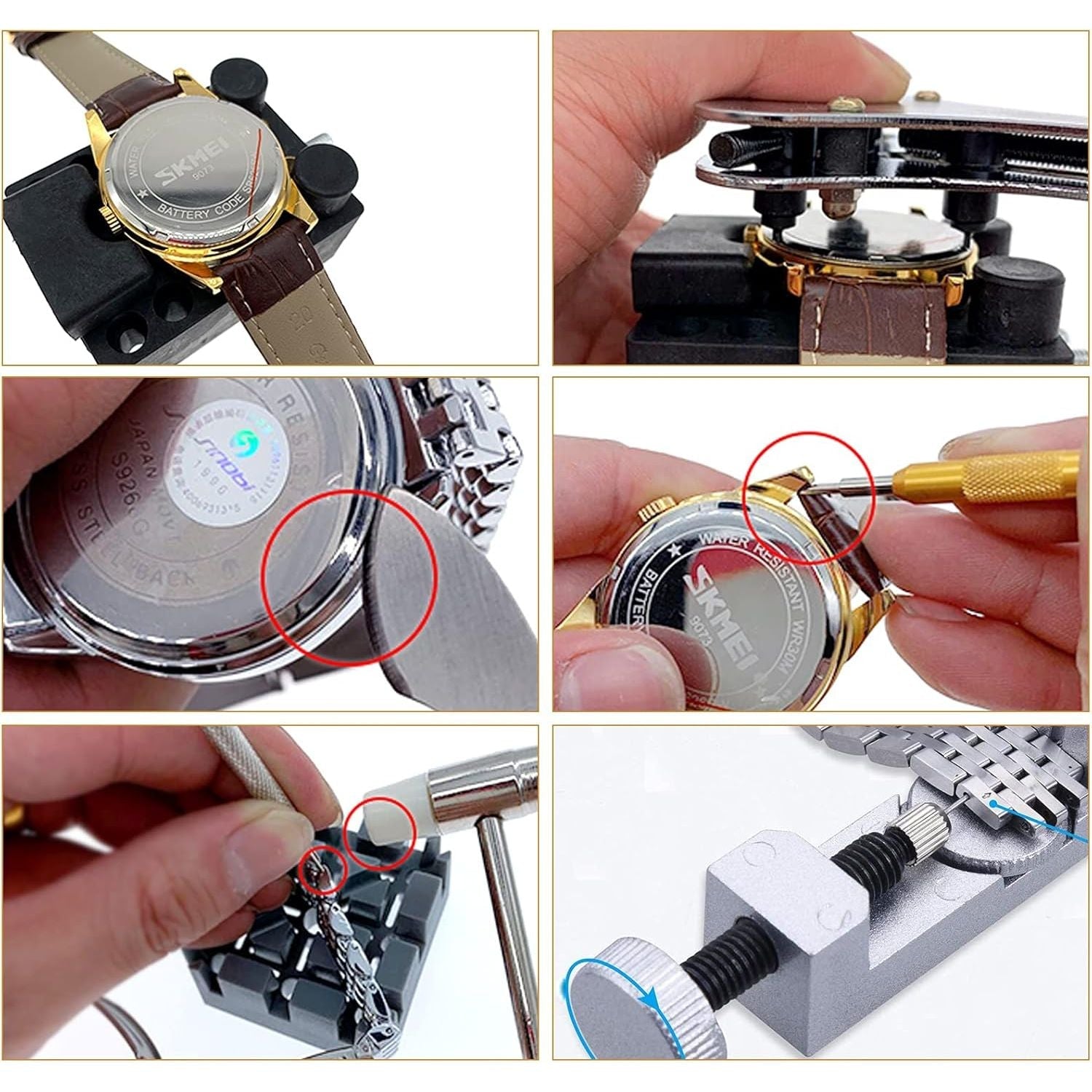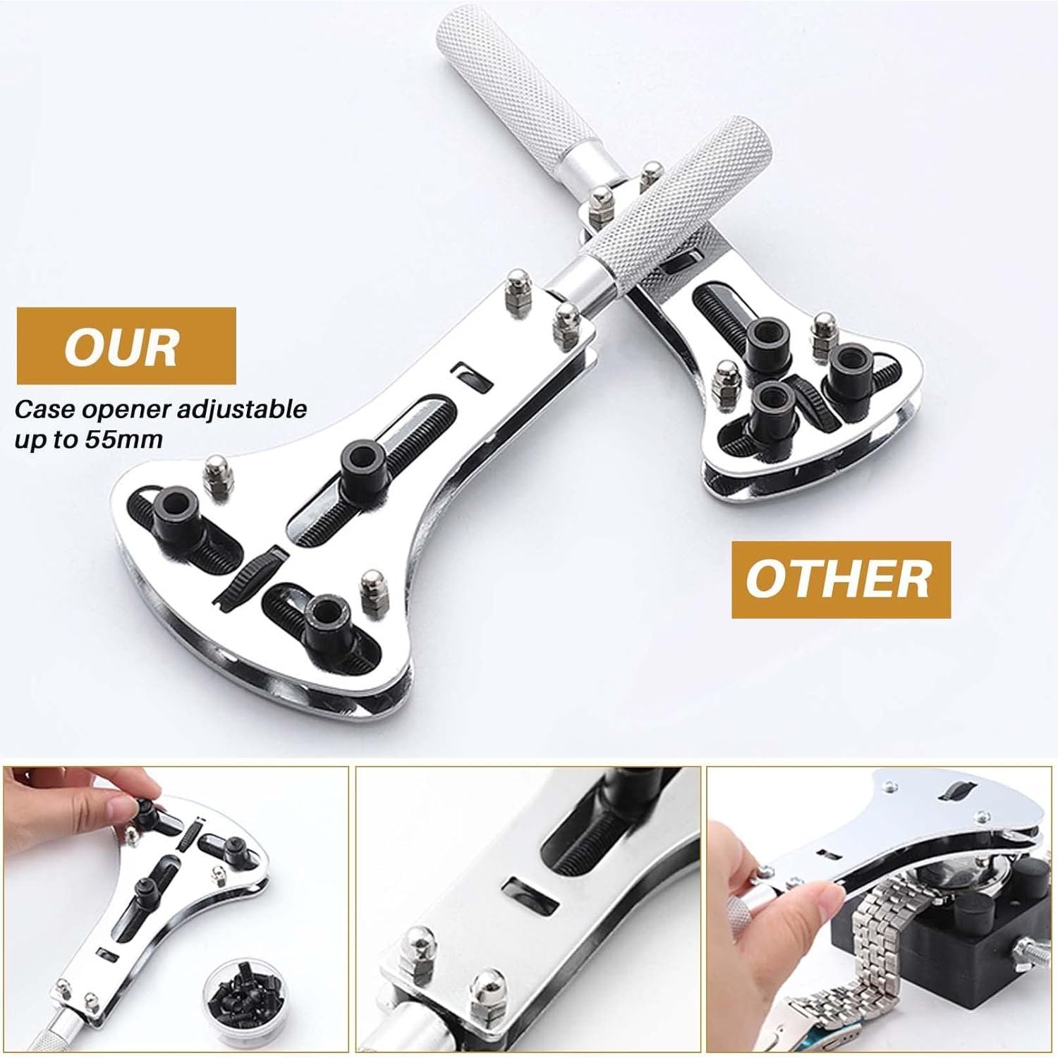 • 【Muliti-Functional】Perfect for frequent tasks such as opening and closing watch, replace batteries, watch strap adjustment, spring bar pins removal, changing watchbands, strap link pin removal and much more.Case opener adjustable up to 52mm, easy to open regular and oversized watches.