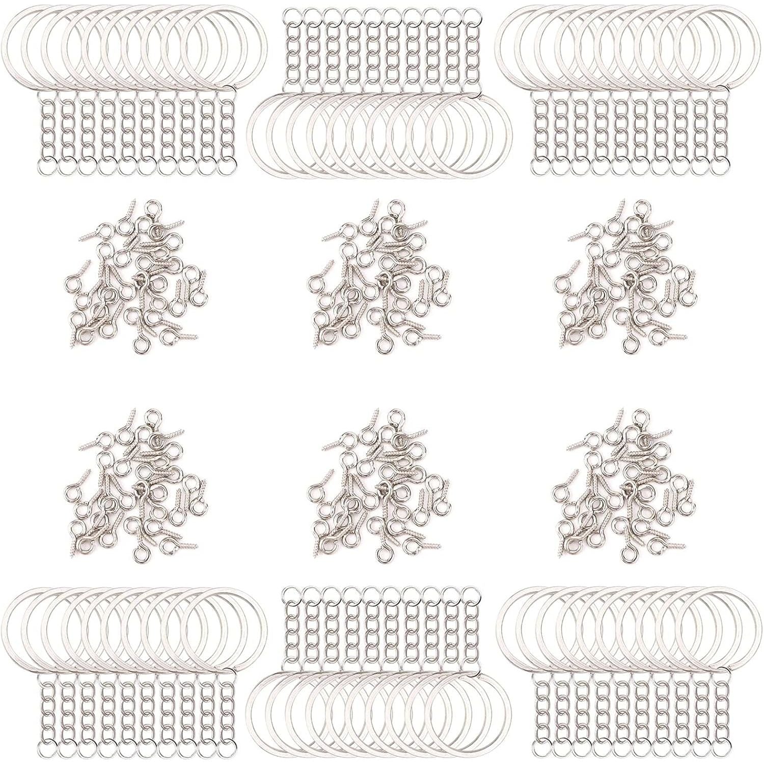 - [Powerful Kit for DIY Craft ] Includes:60 PCS (25MM) key rings with chains and matching split rings, also matches 300 PCS (4*8MM) small screw eye-shaped pins,The 360 pcs Keychain Rings Set rich combination to meet your handmade needs