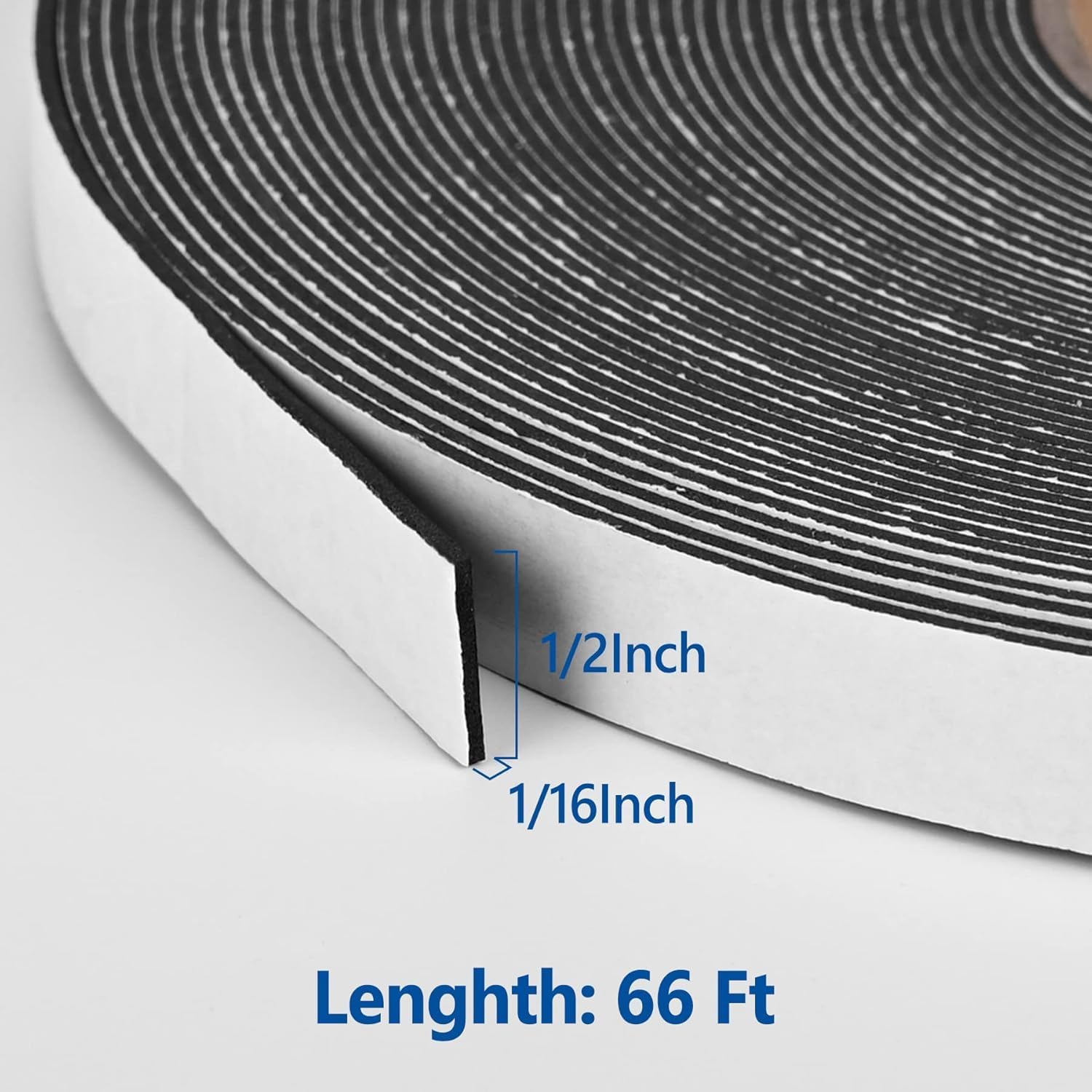 • 【Size of This Foam Tape】1/2 inch Wide x 1/16 inch Thick x 66 ft Long. The Neoprene sponge foam tape is easy enough to customize and cut to size with scissors or blade, and bend easily and conform to any shape