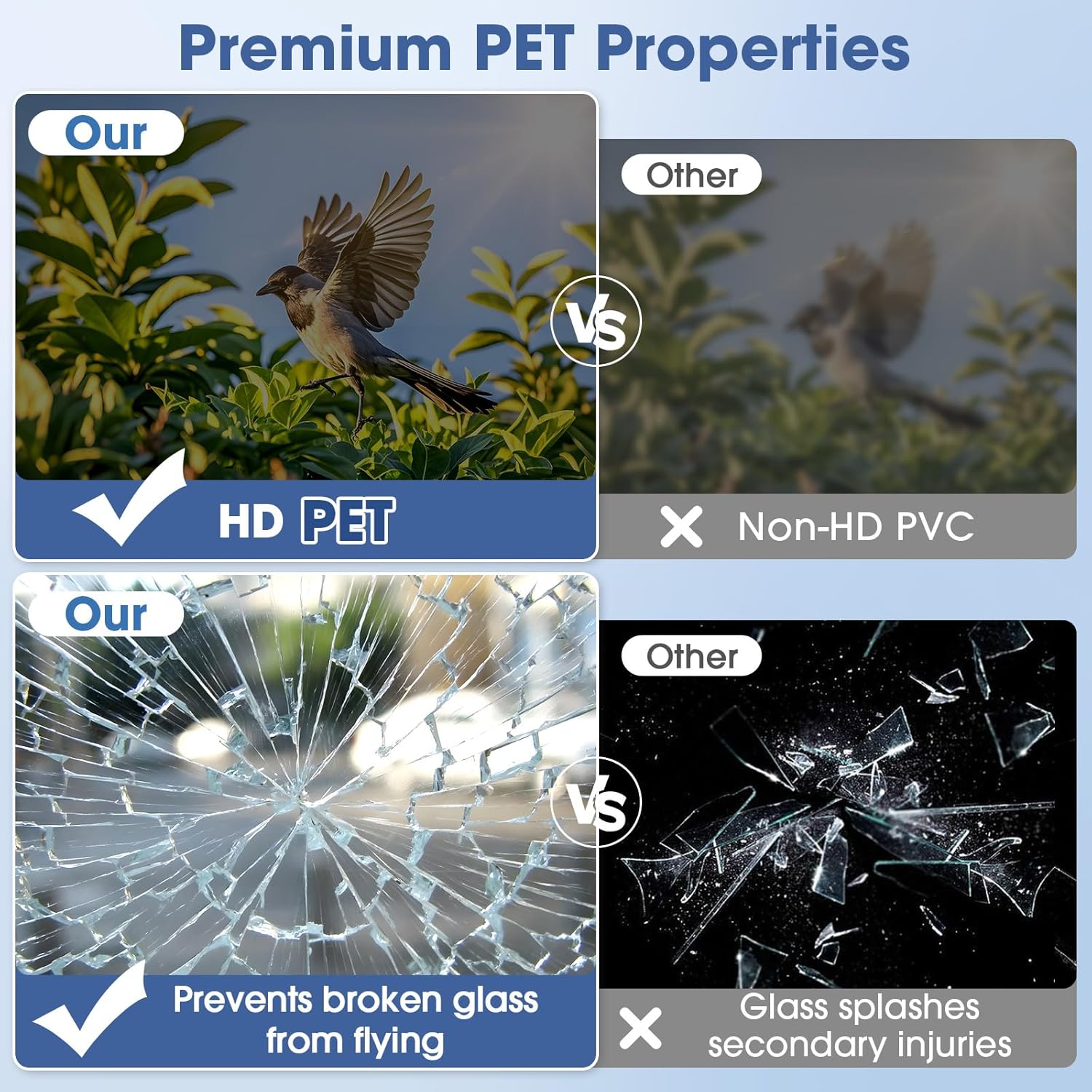 • Easy to Install & With Tools: Our solar film package contains 3 installation tools - Felt Scraper, Knife, Spray Bottle, easy to handle the installation without extra hassle; The backing of the film is lattice lines to ensure that the sun film is cut accurately, fits well and is beautiful! The installation process is fast and smooth, saving your valuable time