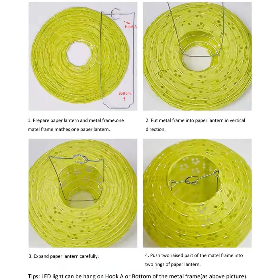 - 【EASY TO ASSEMBLE AND REUSABLE】Made of high quality tissue paper and metal supports, round paper lanterns could easily be stored and used multiple times. you can easily open or fold the lantern. Assembly Manual is attached in the package for your use.
