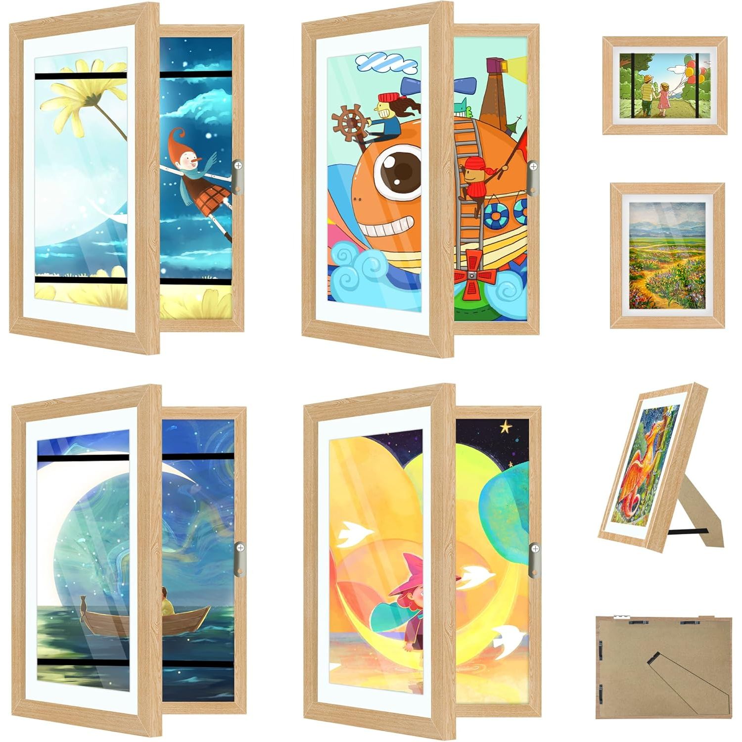 • 【KIDS ART FRAME DESIGN】The kids artwork frames changeable are perfect for displaying your child's precious art frames for kids' art. You can open and close the just like a book, and the interior has elastic bands so you can simply change out their paintings, making art creation and display much easier.