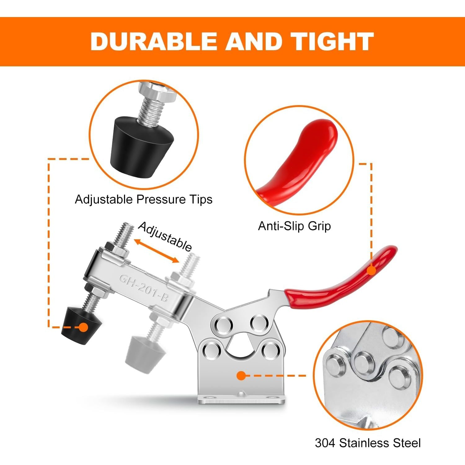 - 【Premium Material】Cold-rolled carbon Steel with Zinc plated coating for higher strength and corrosion resistance, also with rubber cushion. 201B latch clamp with plastic cover handle, easy, safe and comfortable operation.