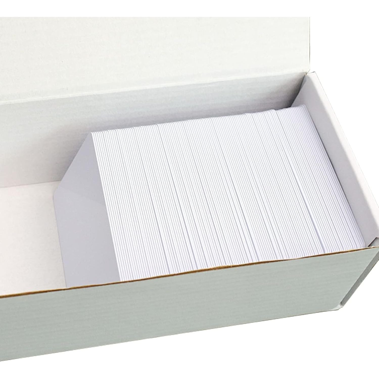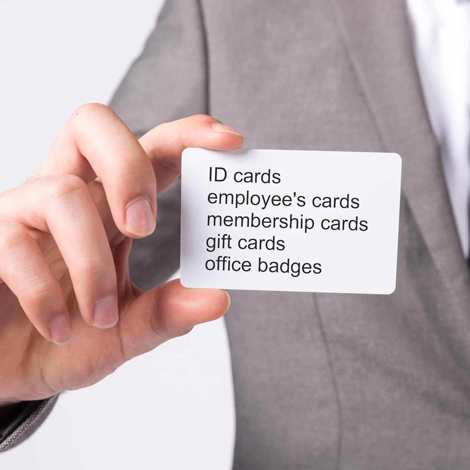 - Measure in 3-3/8” (85mm) X 2-1/8” (54mm) and thickness of 30 mil (0.76mm), the graphic quality white plastic cards work perfectly in ID cards, employee's cards, membership cards, gift cards and office badges.