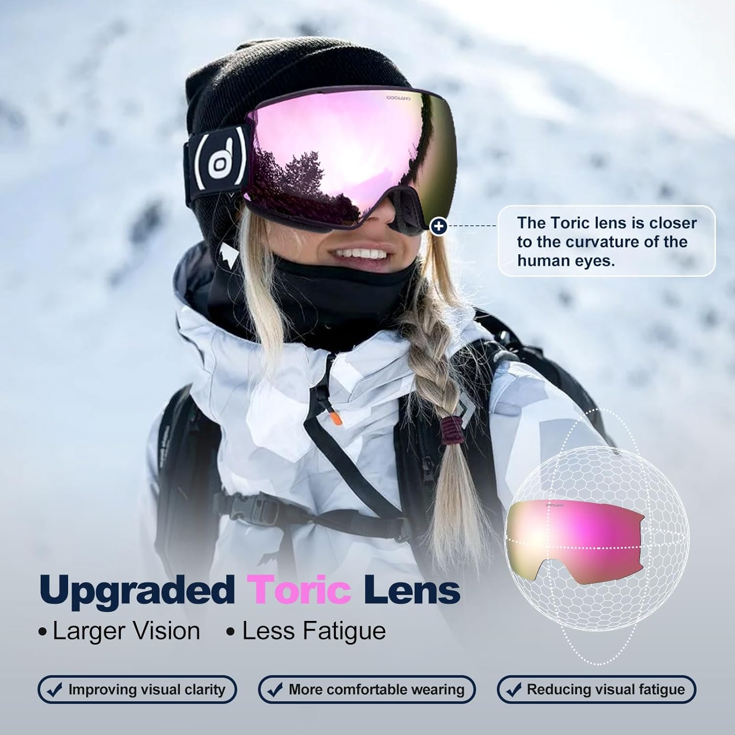 - The Ultimate Ski Goggles Set:Includes 1 pair snow goggles, 1 bonus detachable lens, 1 snowboard goggles case and 1 skiing goggles pouch! With 2 interchangeable lens, ski in any weather.