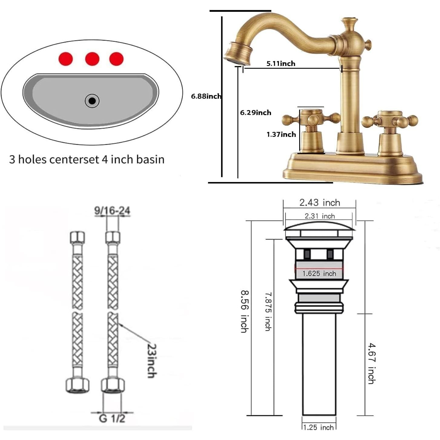 - 3-hole mount with 4-inch centerset design and only 3 parts sink drain stopper for quick and easy installation.