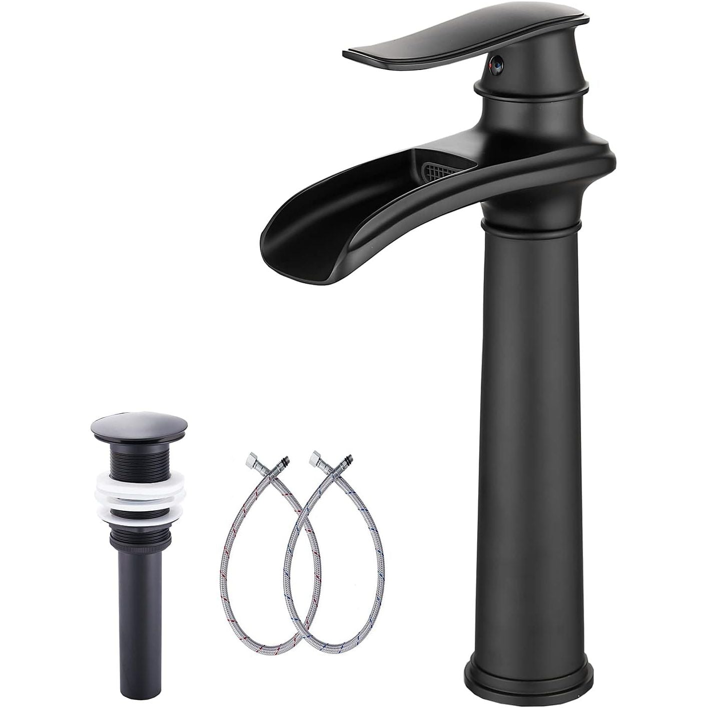 Black Bathroom Faucet GGStudy Waterfall Single Handle One Hole Farmhouse Bathroom Vessel Sink Faucet Matching Pop Up Drain - Just Closeouts Canada Inc.