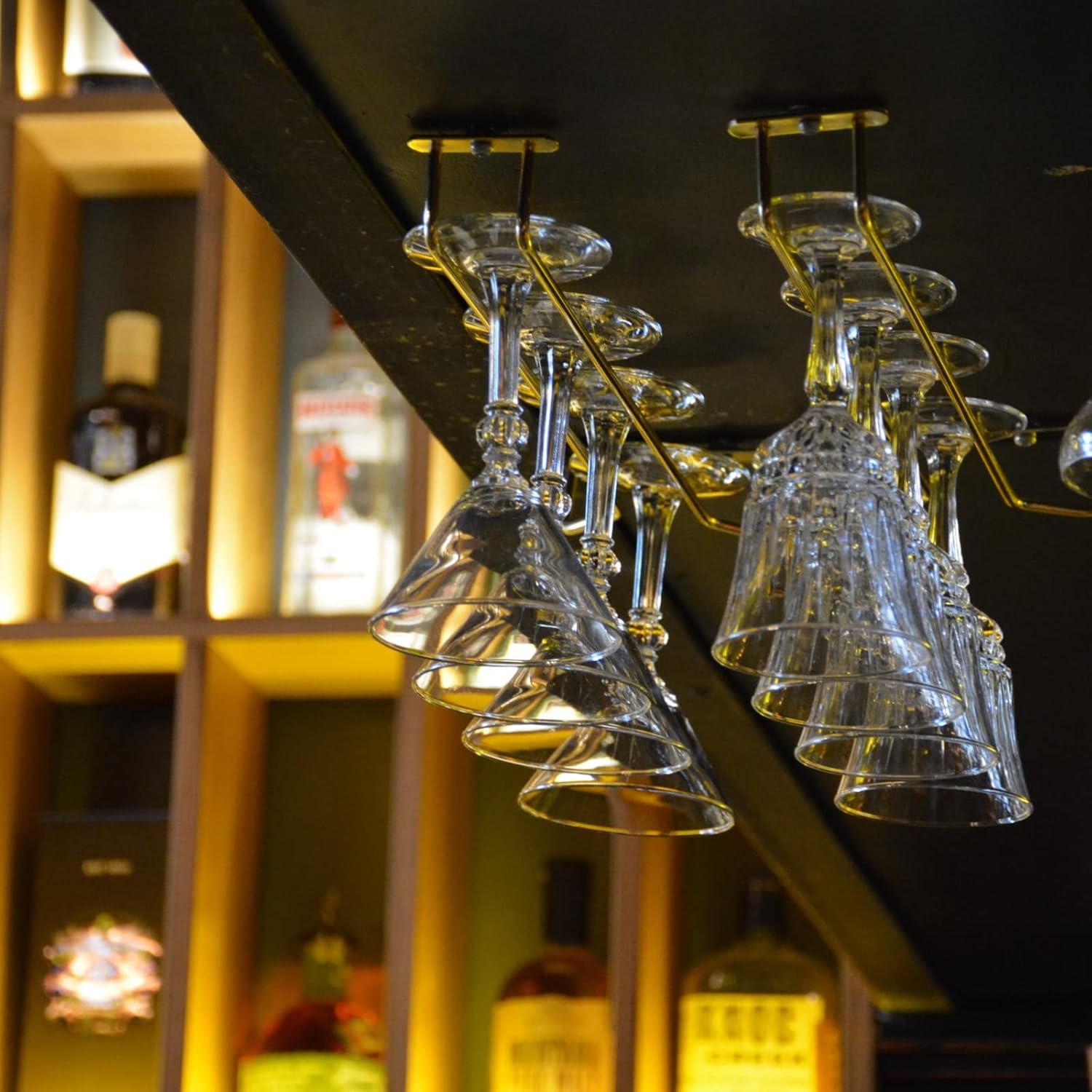 - Space saving stemware holder, these display racks will fit any under cabinet, shelf, kitchen, bar easily, overhead design will help you keep your place clean and in organized.