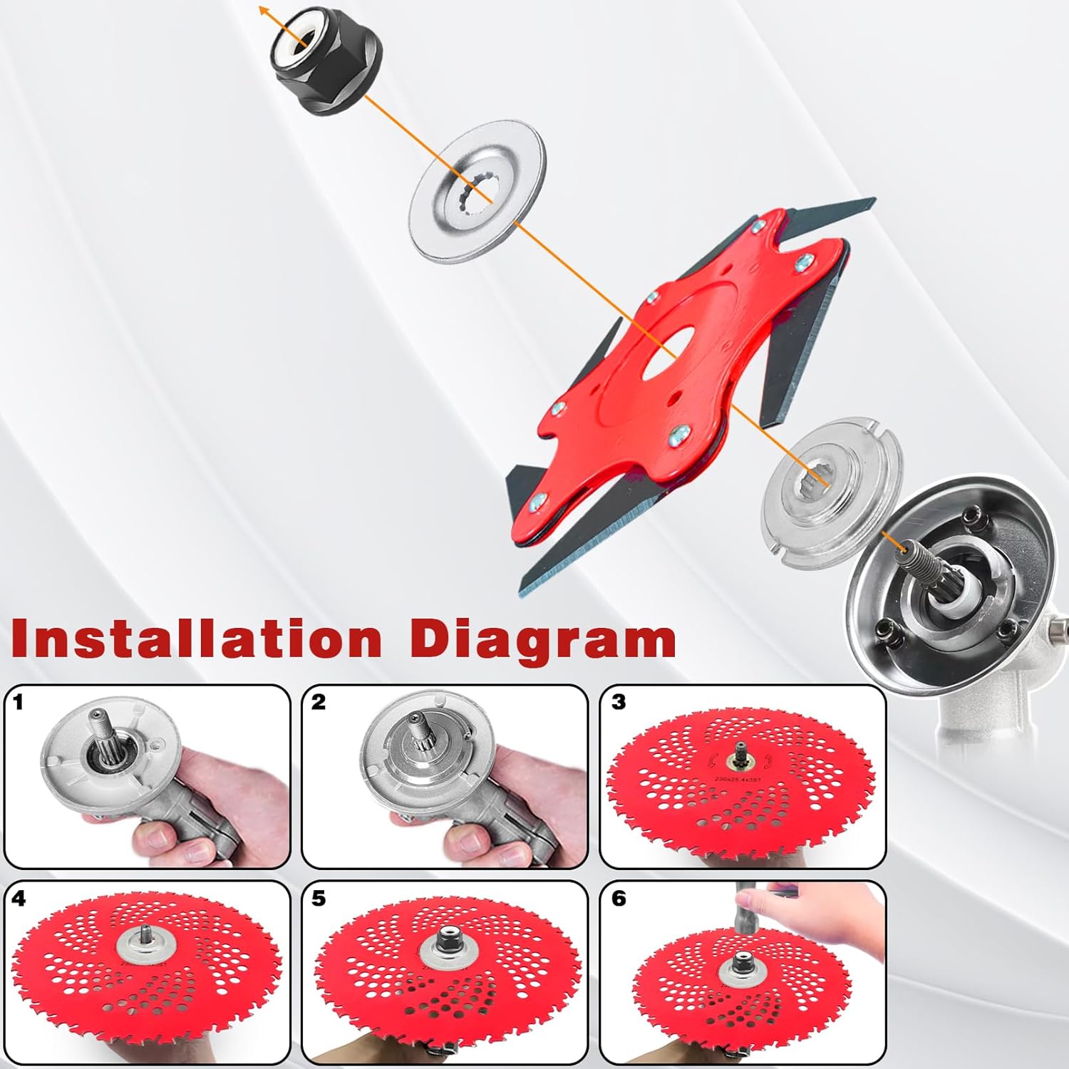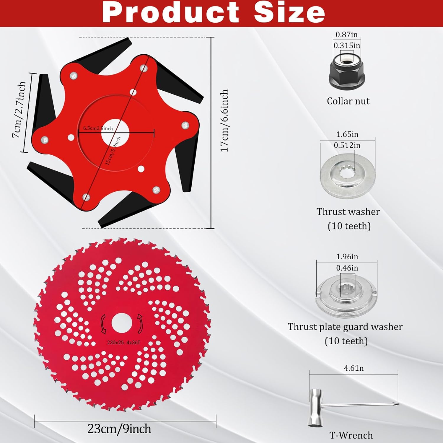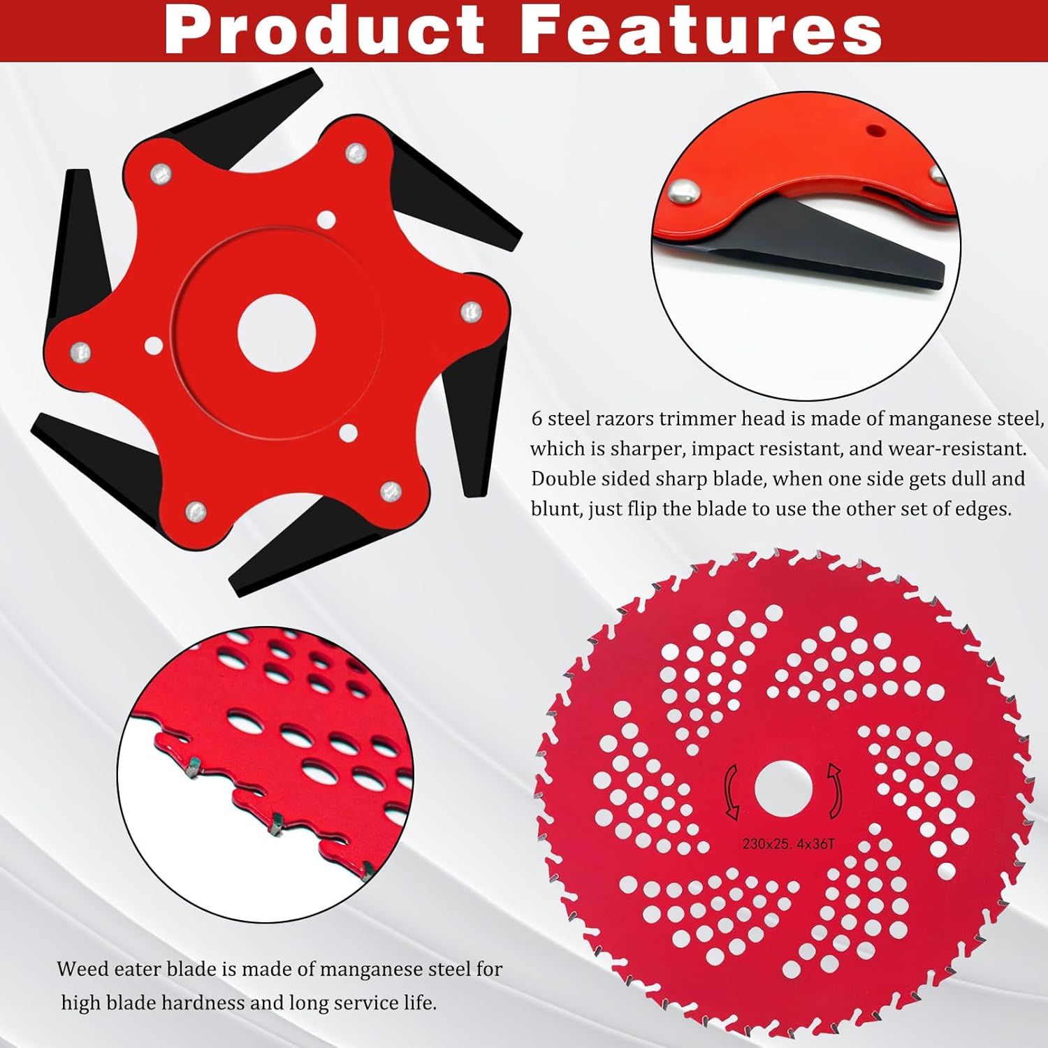 - High Quality: 6 steel razors trimmer head & 36 teeth brush cutter blade are made of manganese steel, which is sturdy and durable, providing a long life service.