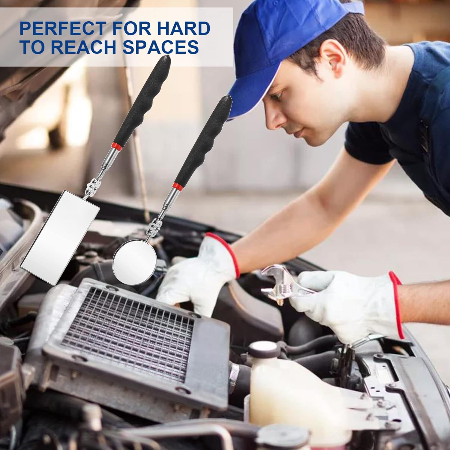 Jucoan 4 Pack Telescoping Inspection Mirror, Flexible Inspection Mirror Round and Rectangular Adjustable Inspection Mirror for Observing Vehicle Small Details,Extends up to 25 Inch, 360 Swivel - Just Closeouts Canada Inc.