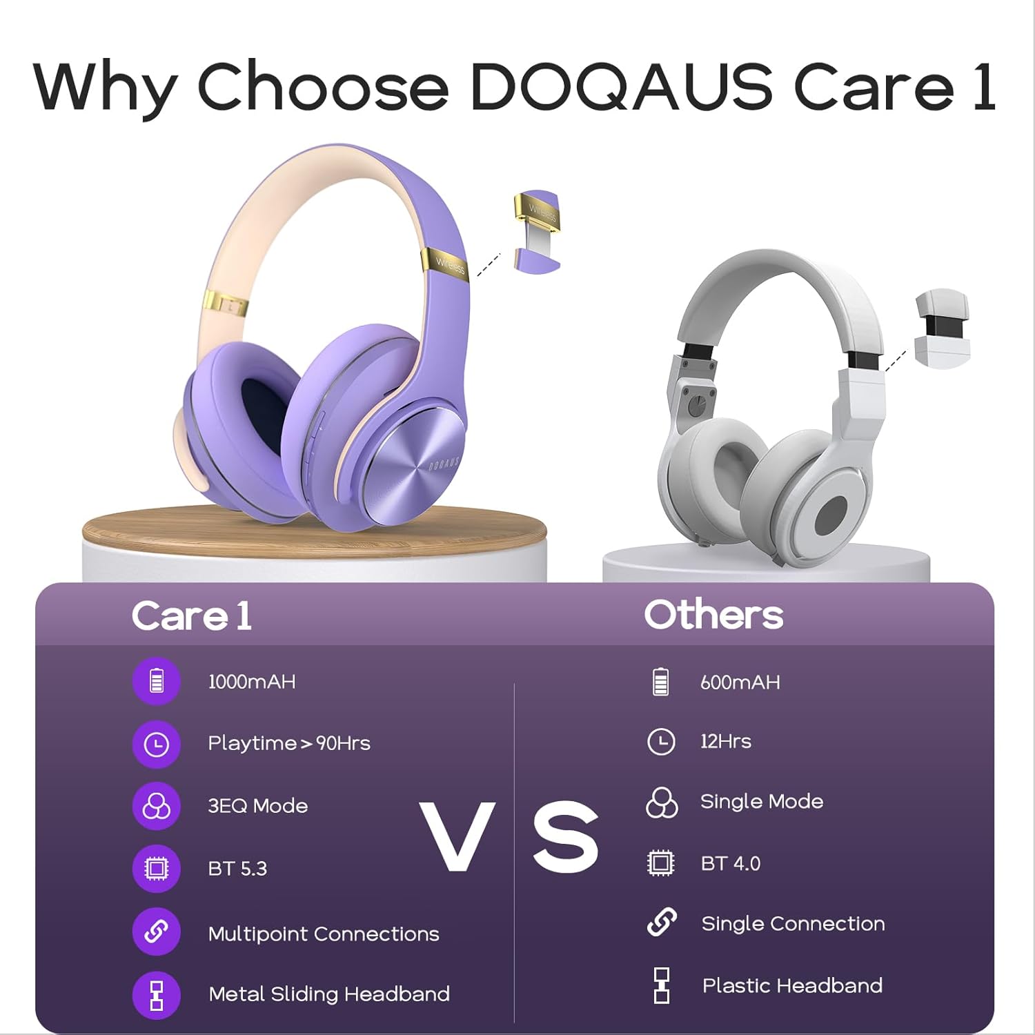 • [Up to 90 hours of playtime]:With up to 90 hours of listening time in Bluetooth mode, you'll always have music to inspire you. Regardless of whether you want to use the convenience of wireless headphones or the long-lasting properties of a wired connection (3.5 mm audio cable included), you have the choice with the DOQAUS Care 1 bluetooth headphones