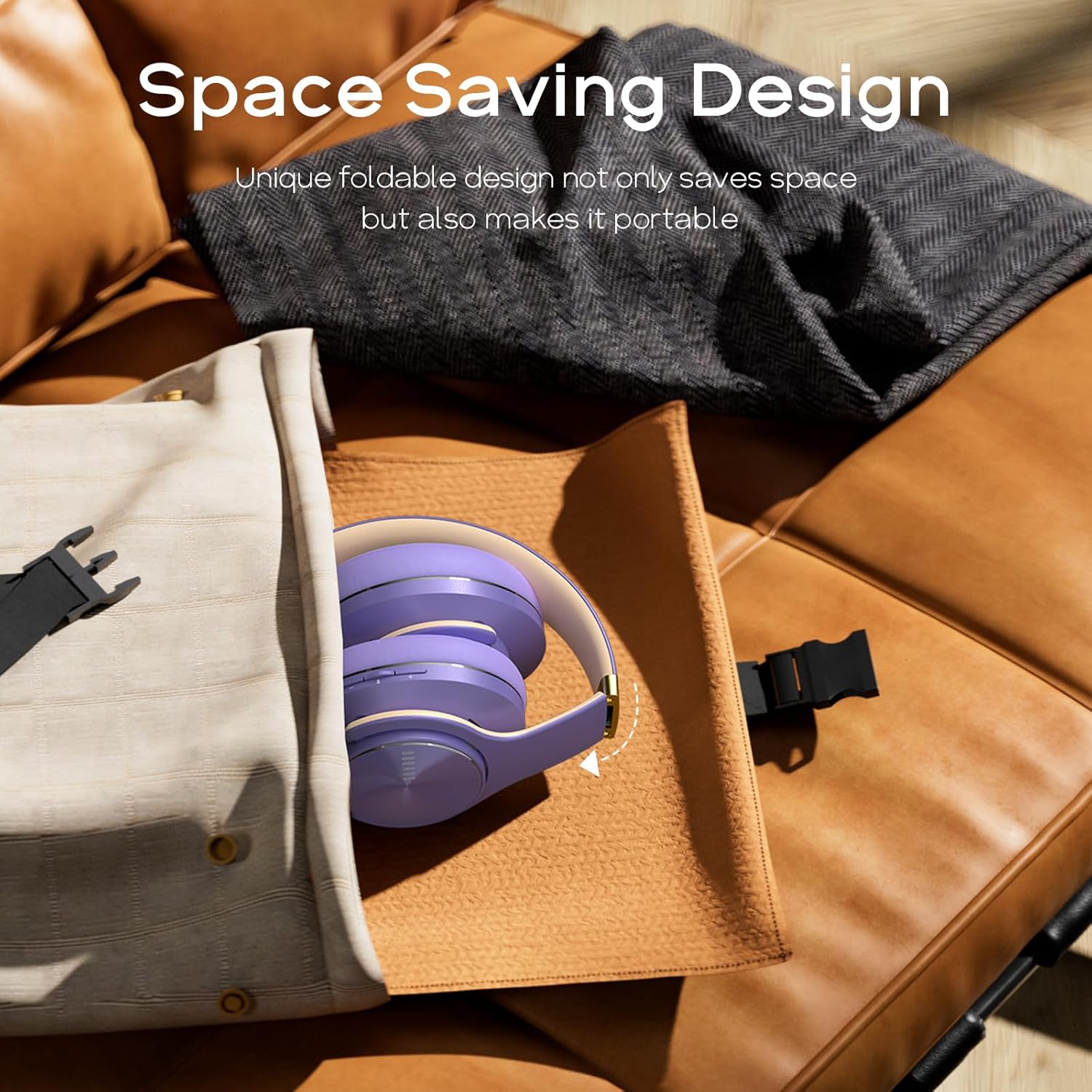 DOQAUS Wireless Headphones, [90 Hrs Playtime] Headphone Bluetooth Wireless with 3 EQ Modes, Hi-Fi Stereo Bluetooth Headset with Microphone and Comfortable Earpads for iPhone/PC/Travel/Office (Purple)