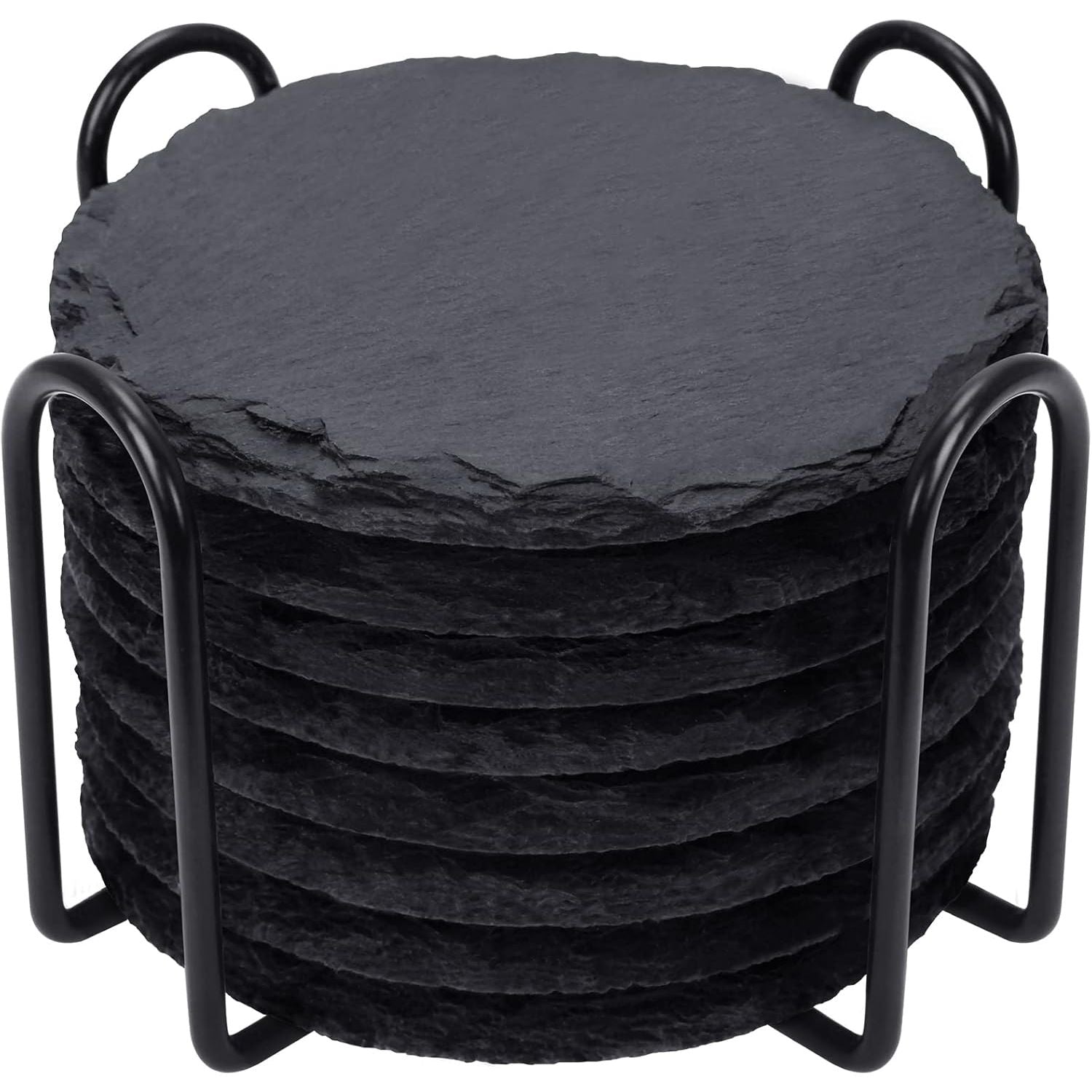 - STYLISH AND MODERN DESIGN WITH METAL HOLDER: Our Coasters are the epitome of style and sophistication. The smooth black stone texture adds a touch of luxury to any setting, making these coasters not just functional, but also a stylish addition to your décor. Perfect for use in your home, office, or anywhere you want to add a touch of elegance, our coasters are sure to impress your guests and elevate your interior design.