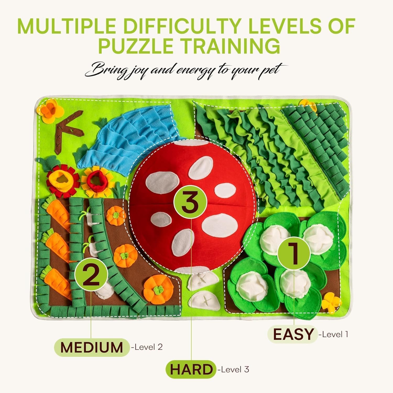 - Exclusive Design: We have collaborated with professional product designers and experienced pet experts to create the "Farm Field" sniffing mat. This product, tailored to dogs' instincts, is the perfect gift for your beloved canine companion