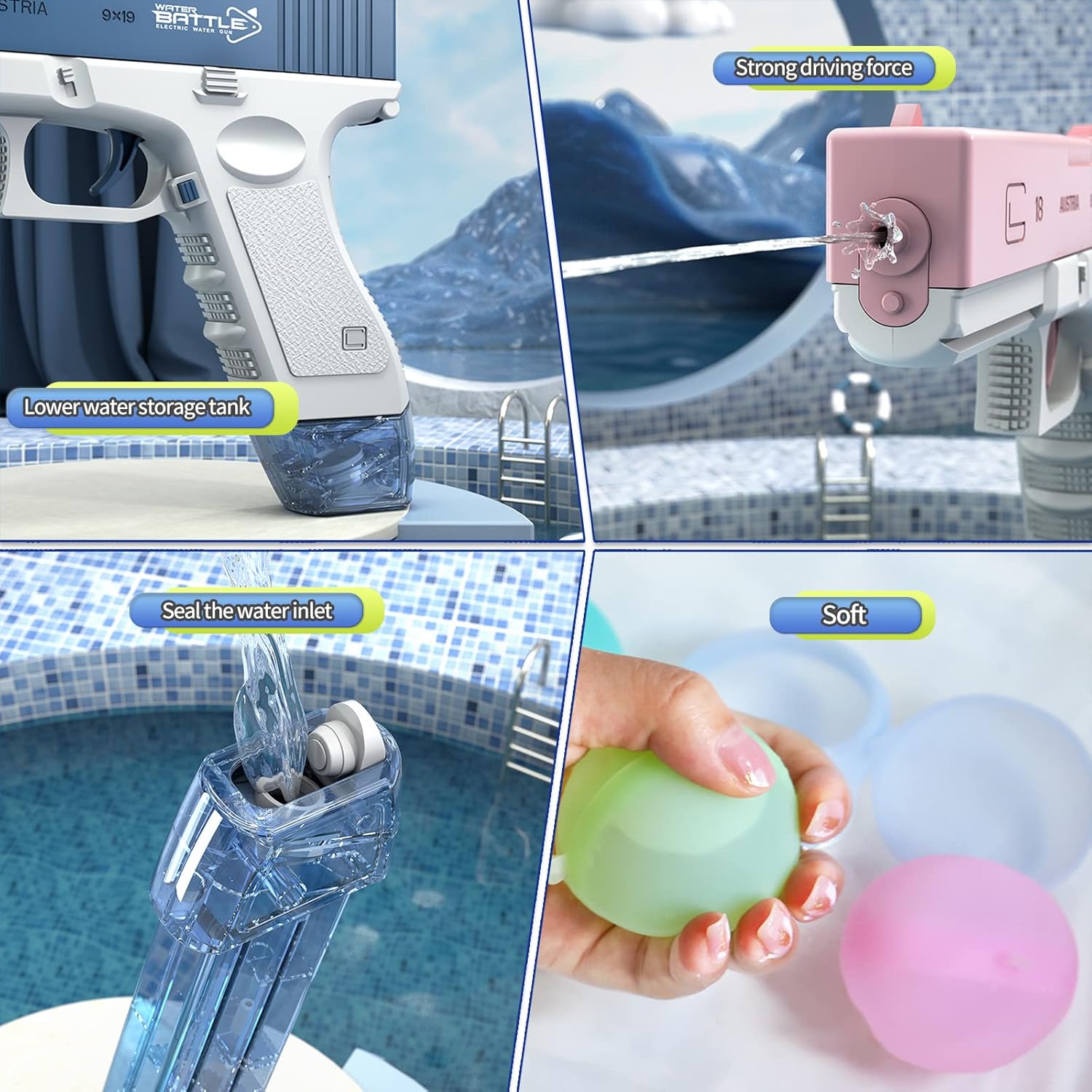 - Fun and Cool Gifts: It's the perfect summer vacation gift, birthday gift, adult kids gift. water guns. This is the most suitable water toy, it will bring more fun to water games. Automatic water gun. water guns for adults.
