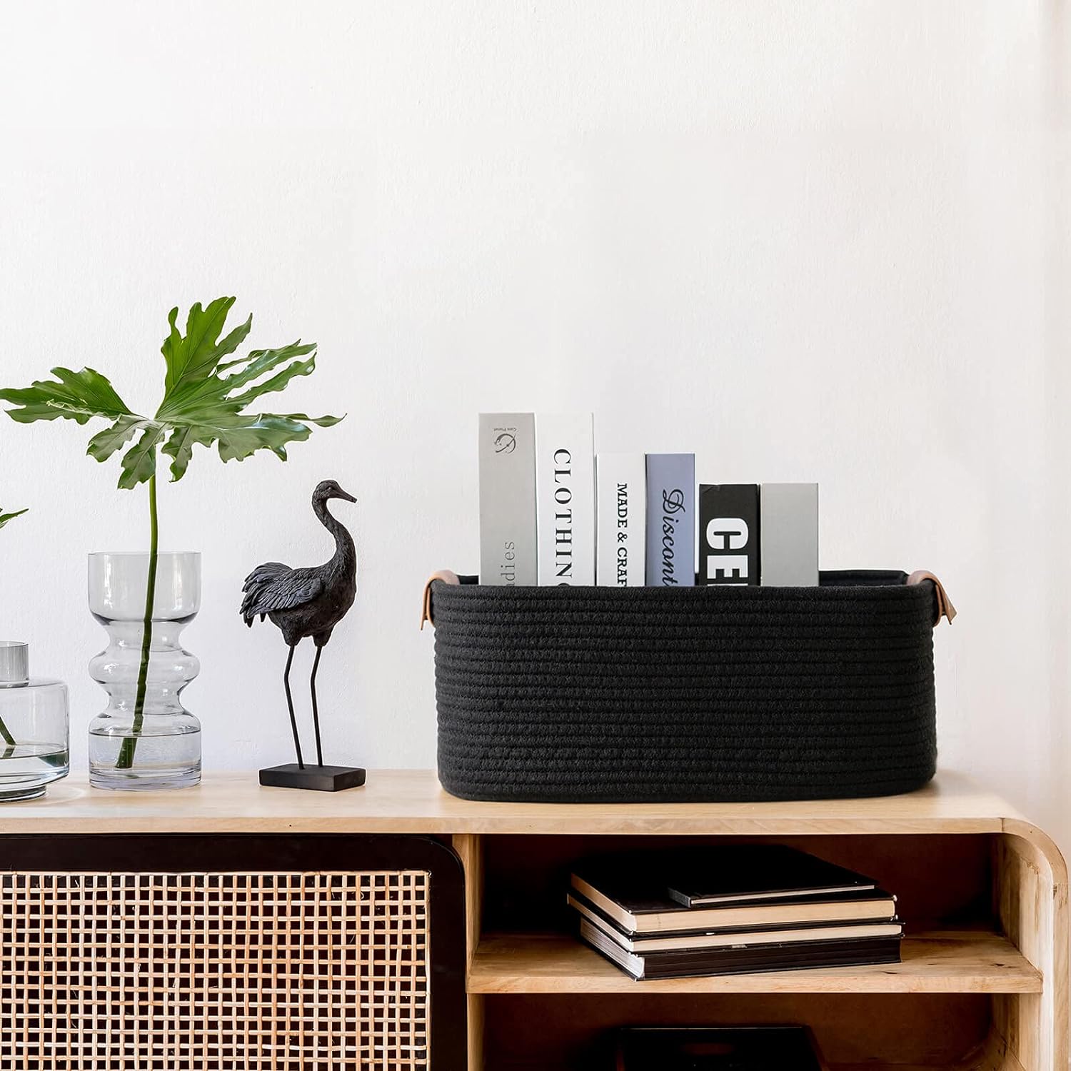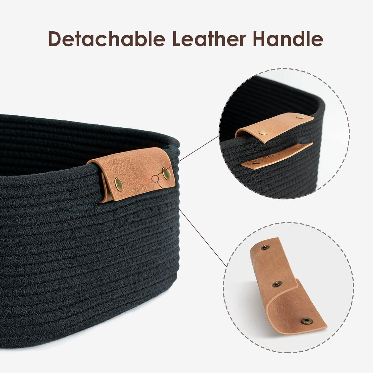 - Stylish Design: The rectangle basket is made with cotton rope. The handles on both sides are wrapped in brown leather. It is easy to carry and adds a stylish touch to your living space