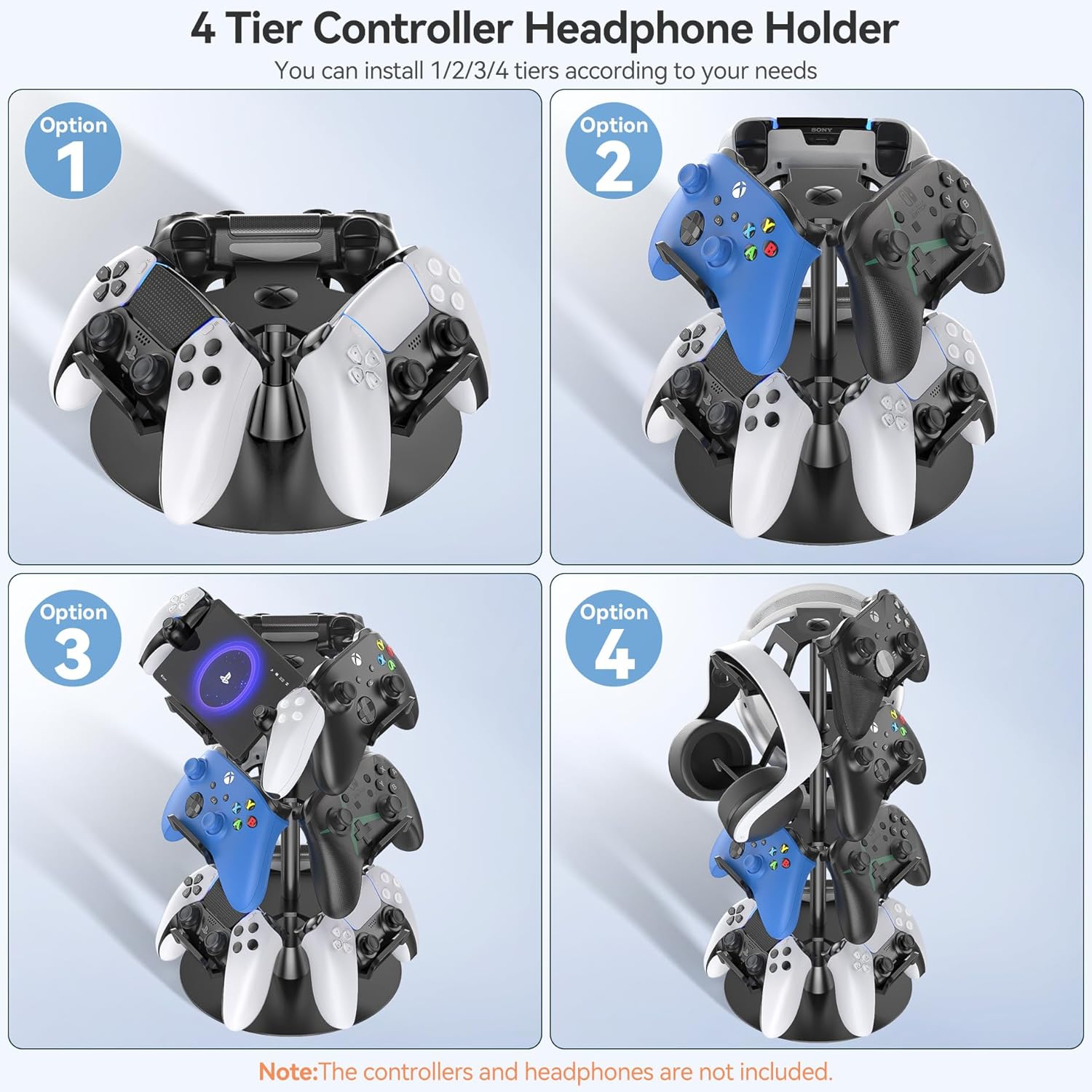 - Suit various accessories: Whether you're a fan of the latest Xbox, PlayStation, Switch, popular controllers, or smartphone, this holder has got you covered.Whether you're taking a quick break to check your messages or want to switch between different gaming experiences, everything you need is right at your fingertips. It's the ultimate solution for keeping your gaming area tidy and your gaming experience seamless.