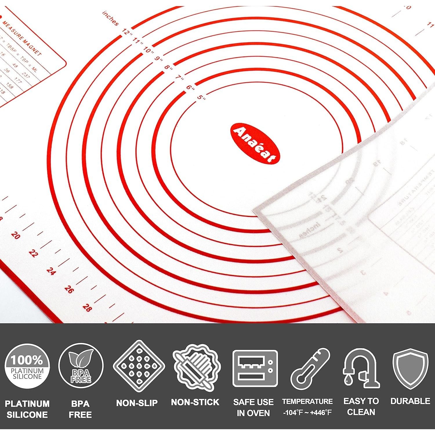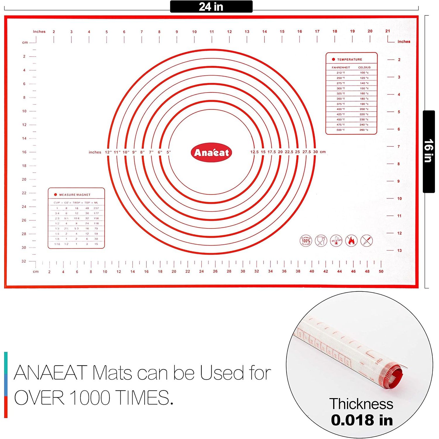 - 【 PREMIUM QUALITY 】: ANAEAT silicone dough rolling mat is made of 100% food grade silicone, reinforced with fiberglass ,BPA free and non-stick surface, Safe to use in the oven or freezer, heat resistant from -40 degrees to 480 degrees Fahrenheit.