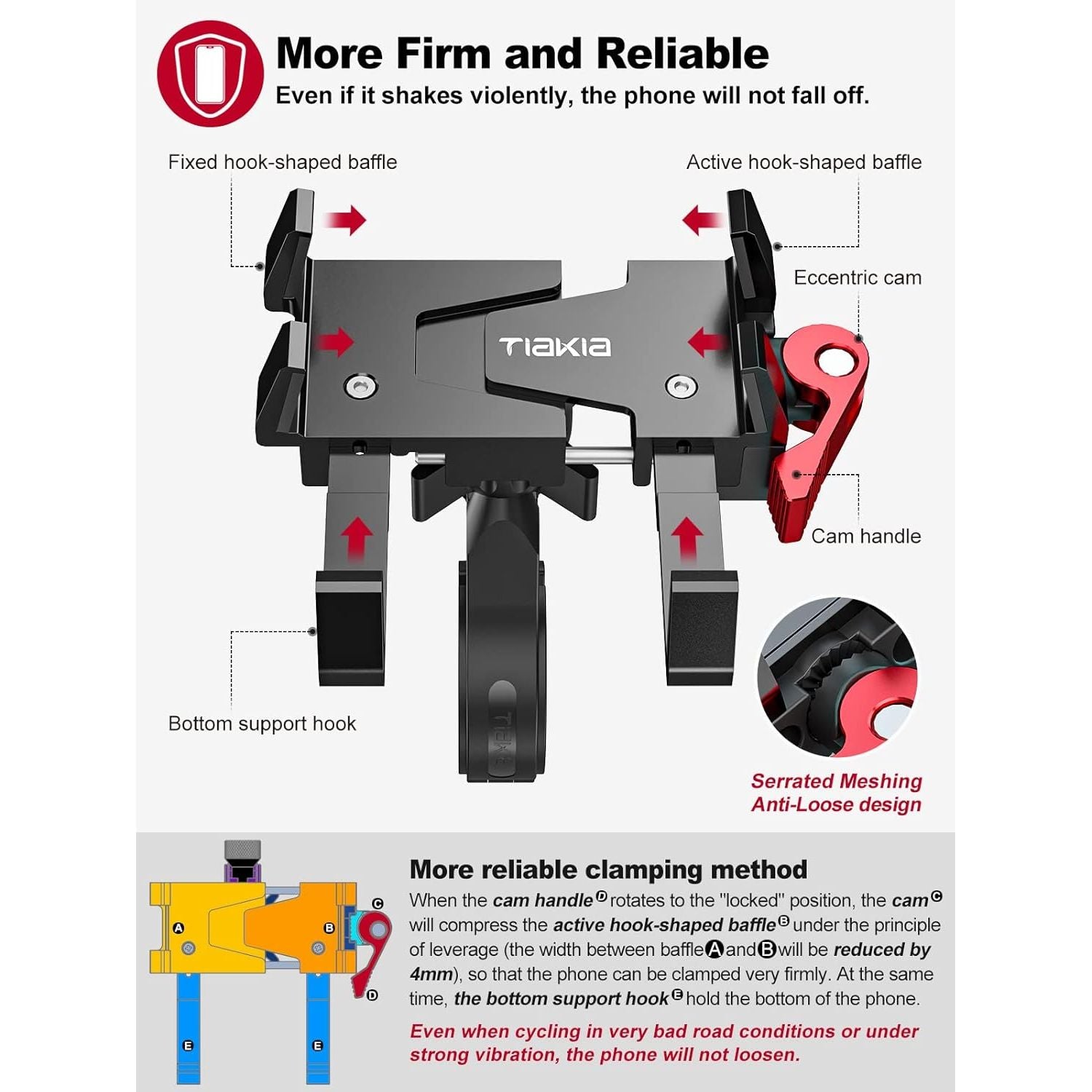 - 【6-Claw Advanced Version Bracket】Break the tradition! The Tiakia bike phone mount holder is newly upgraded to 6 telescopic arms in structure, and the telescopic arms are added at the bottom, which makes the installation more compact and the protection more in place! In thousands of installation tests, this phone mount has shown the best stability on bicycles and motorcycles!