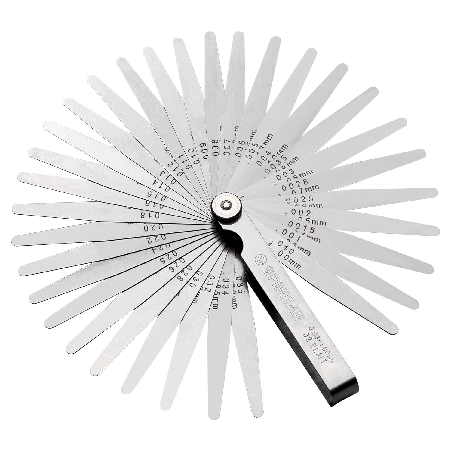 Spurtar Tapered Feeler Gauge, 32 Blades 0.001 - 0.04"/ 0.03 - 1.00mm Dual Marked Imperial and Metric Feeler Gauges Set, Gap Width Thickness Measuring Guage Tool for Guitar, Spark Plugs - Just Closeouts Canada Inc.