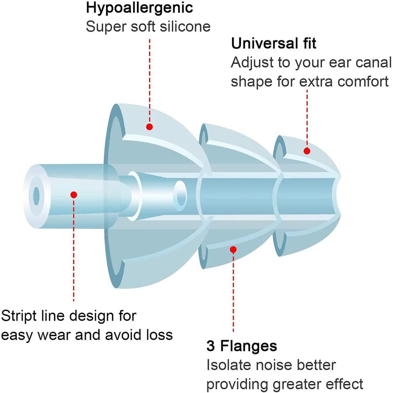 • Soft Silicone Ear Plugs: Made of soft silicone material,adjusts to your ear with comfortable shape; Washable,reusable,safe and comfortable to use.