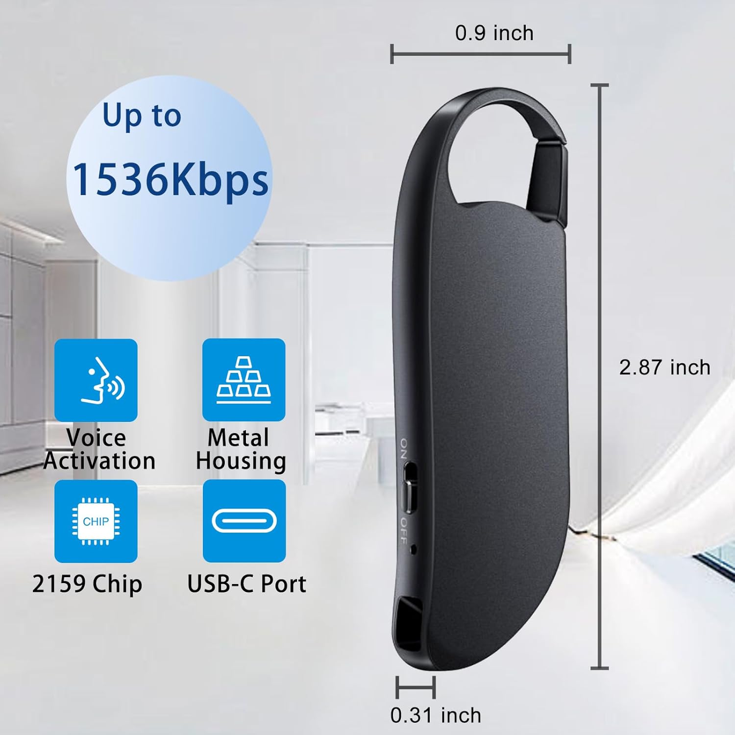 - 64GB Internal Memory: Our digital voice recorder comes with a massive 64GB internal memory, capable of holding up to 900 hours of 160kbps recordings. With a sleek metal housing measuring 0.31x0.9x2.87 inches and weighing 34g, ideal for on-the-go recording