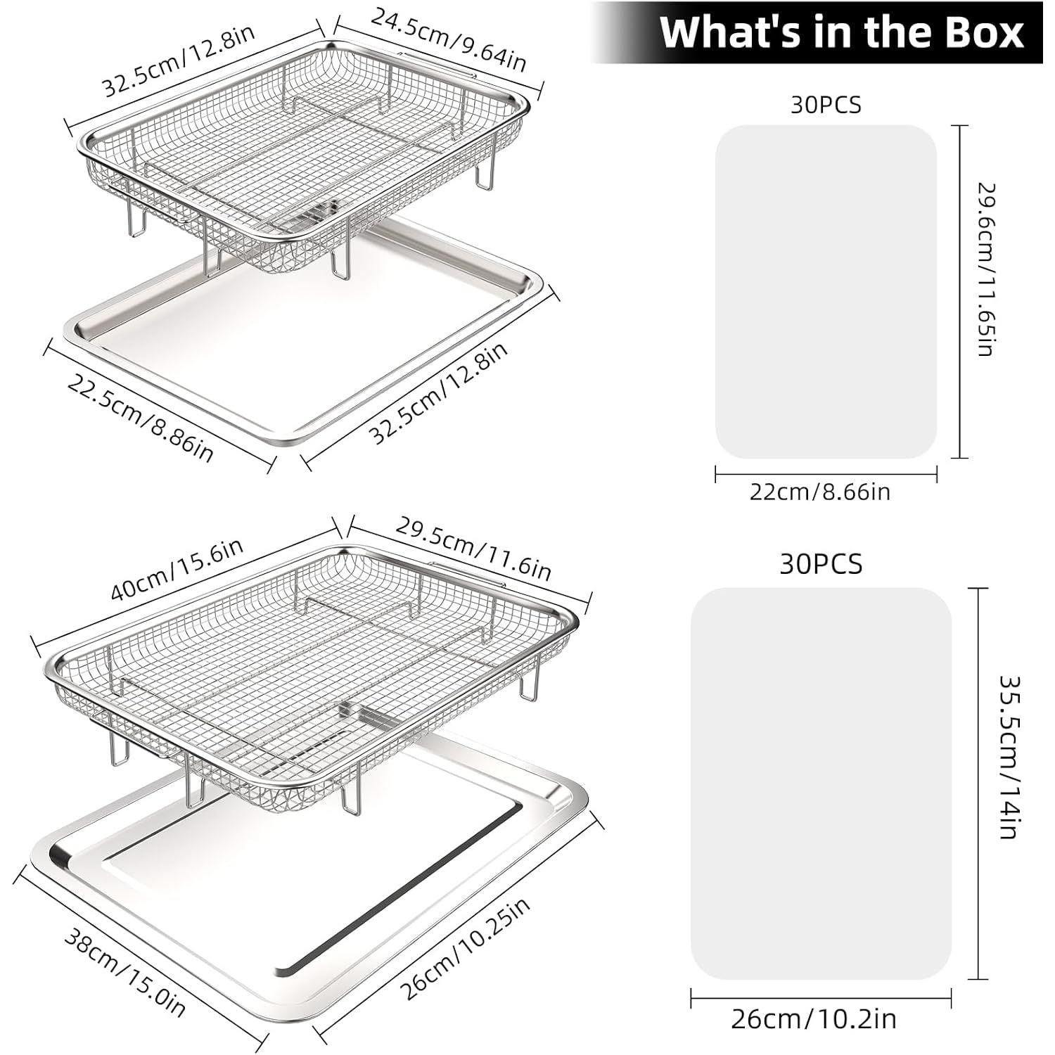 - 【Multi-functional】The air fryer tray set is not just ideal for air frying, baking and roasting, but also for cooking en papillote, to help you make crispy french fries, hash browns, roasting vegetables, juicy steaks and much more. Whether you're feeding a family or entertaining guests, it will handle it all.