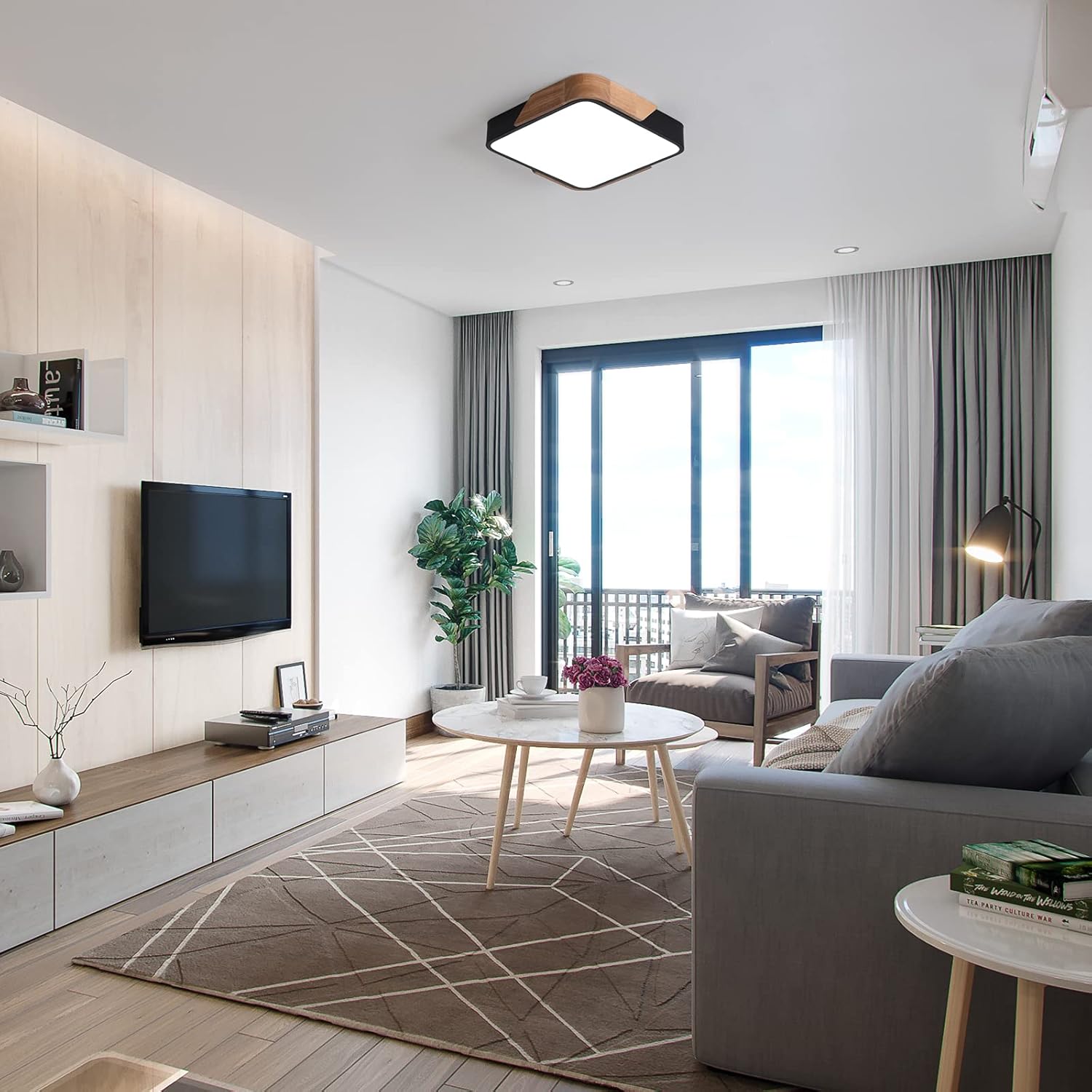 - Unique design of oak and iron:Flush mount light adopts iron base and high-quality acrylic lampshade, and the side edges are spliced with wood, the wood grain is clear, environmental protection and corrosion-resistant. Flush mount light fixture blend perfectly into any space, matching most furniture styles while creating a relaxing atmosphere. Modern ceiling light provide wonderful lighting for living room, foyer, kitchen, entry, stairway, corridor, bedroom, hotel and office, etc