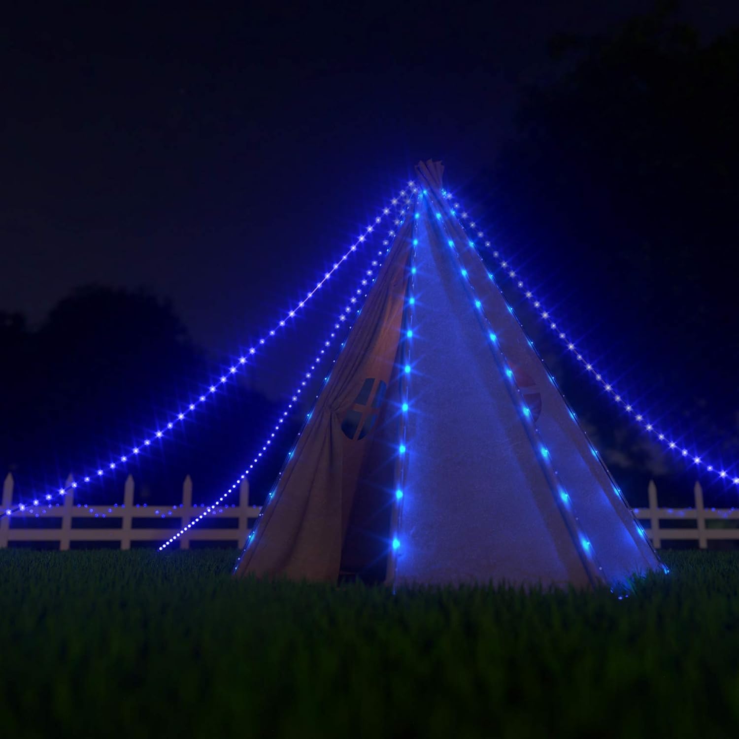 - 【 100 LED BLUE ROPE LIGHTS WITH 8 MODES 】 8 modes with different flashing frequencies are suitable for carnival, cheerful, warm and romantic atmosphere. The order of the lighting modes is: wave, fireflies, combination, chasing, twinkle, slowly, fading, steady-on. You can adjust the mode at any time through the buttons of the solar powered rope lights.