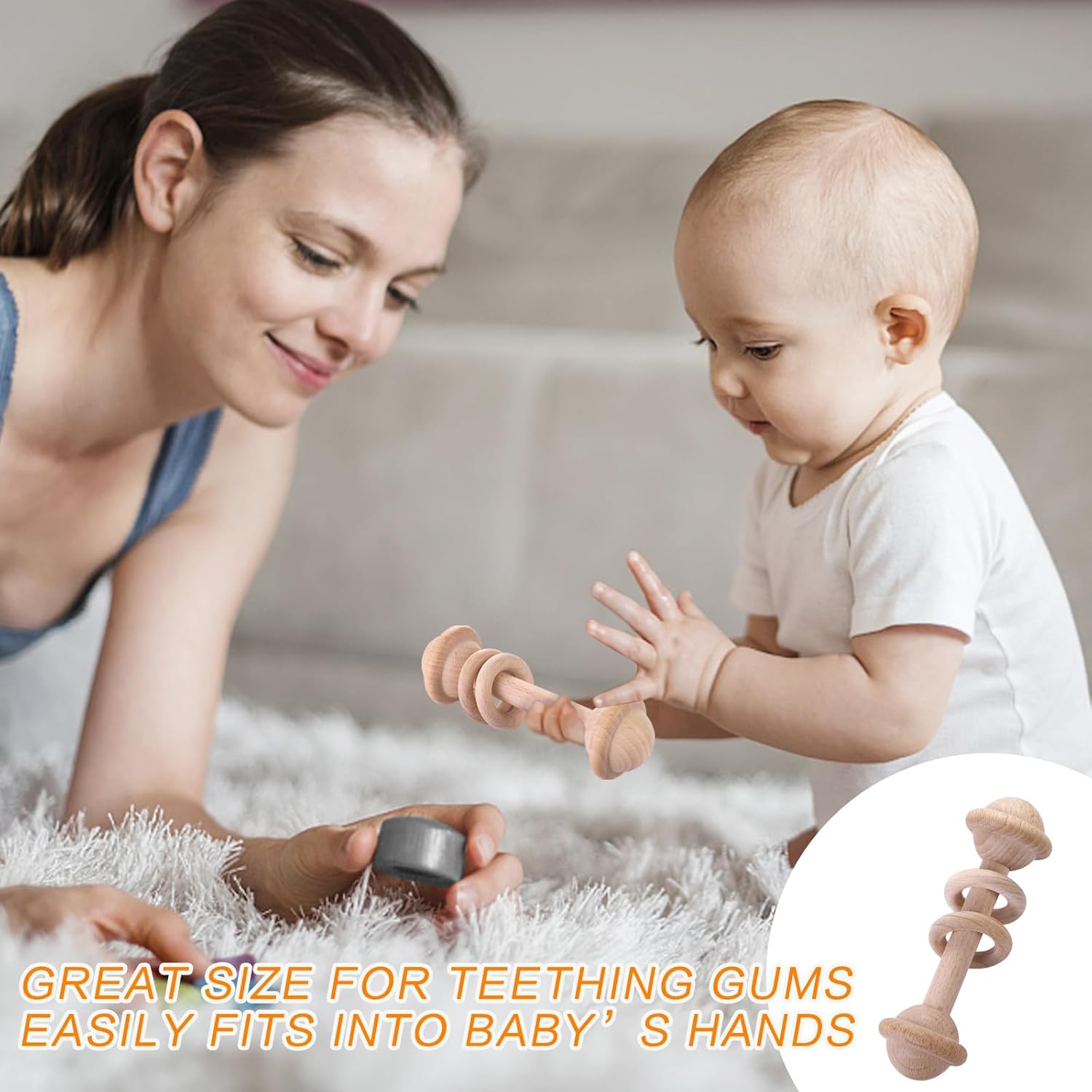 - 【New born baby girl boy gift】-Our wooden rattle toys are made from natural beech, no paint and burrs, smooth edge, perfect grasping toy for toddlers, also bite for teething relief. Our cotton cute baby bibs are designed with fashionable printings, easy to match your baby's outfit, add more fun to your baby's dressing up.