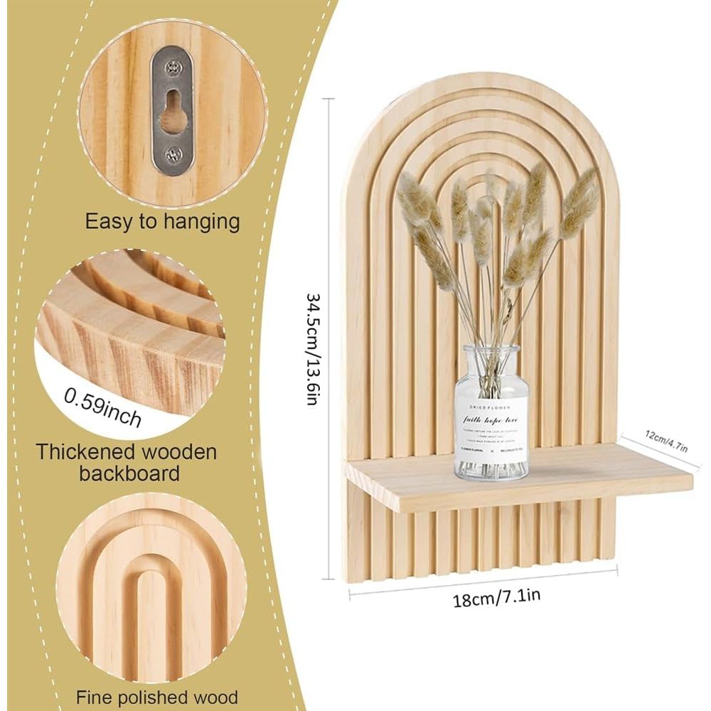• 【EASY TO INTSALL】:The wall mount arch wall shelf has a triangular hook on the back, allowing you to hang it directly. At the same time, there are installation holes on the surface of the wooden board, and we provide you with matching screws. You can use our screws to connect the wall bracket with the horizontal wooden board, increasing the stability of the wooden frame.