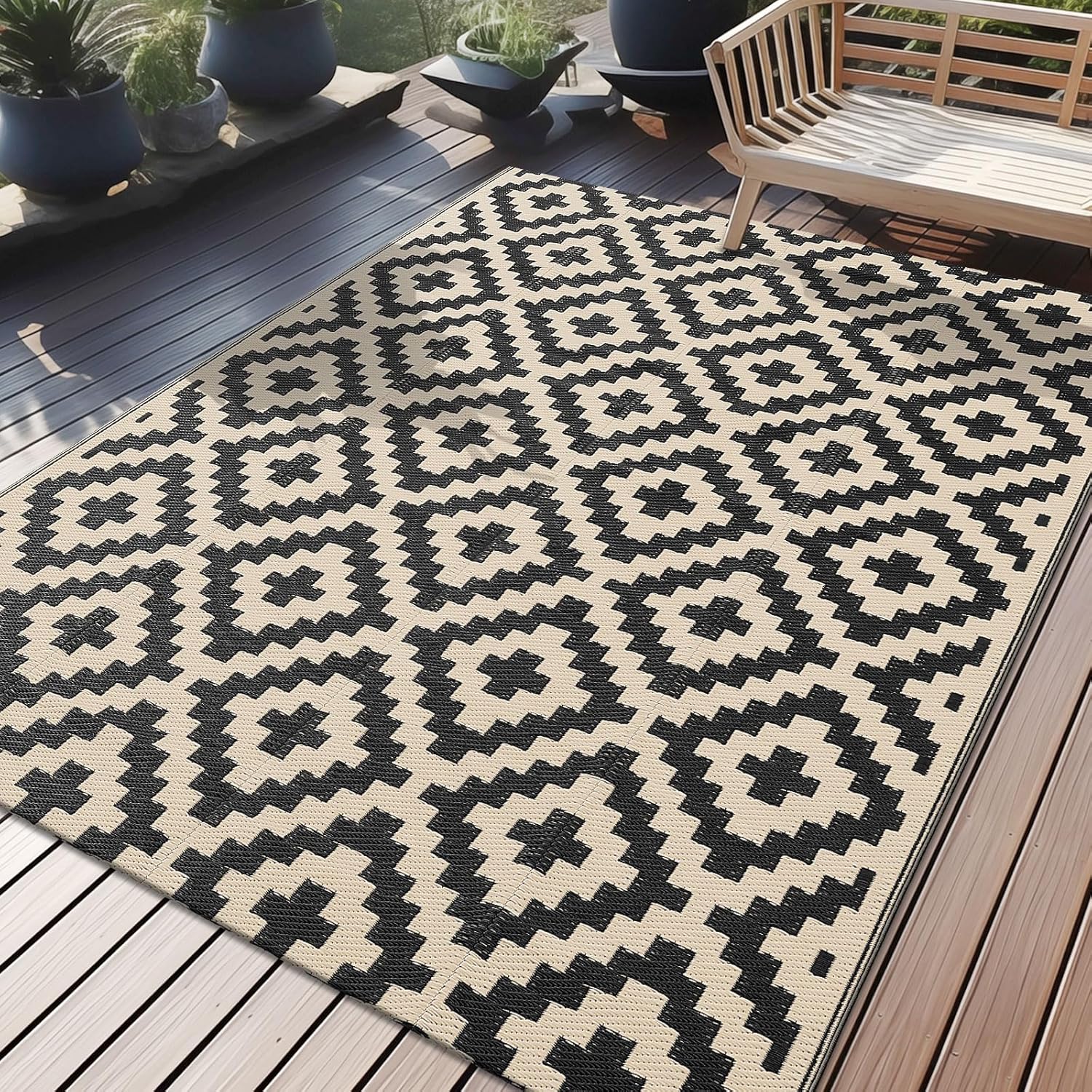 - Reversible & Versatile: Our outdoor Outdoor rug carpet features modern geometric patterns on both sides—simply flip it to switch up your style. Perfect for patios, gardens, beaches, picnics, RV camping, garages, balconies, backyards, and more. Suitable for both indoor and outdoor use, it’s a versatile addition to any space.