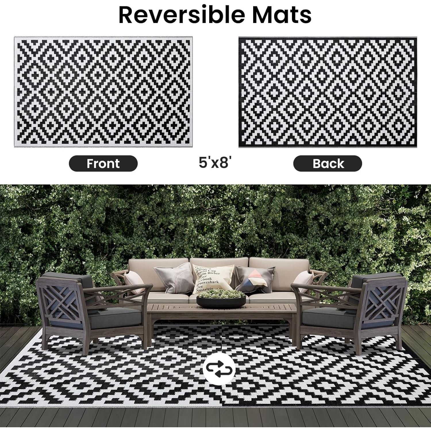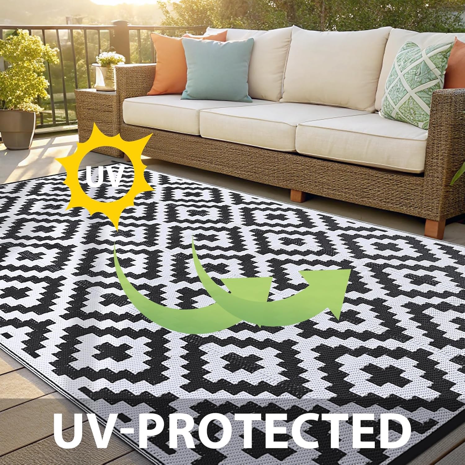 • Reversible & Versatile: Our outdoor Outdoor rug carpet features modern geometric patterns on both sides—simply flip it to switch up your style. Perfect for patios, gardens, beaches, picnics, RV camping, garages, balconies, backyards, and more. Suitable for both indoor and outdoor use, it’s a versatile addition to any space.