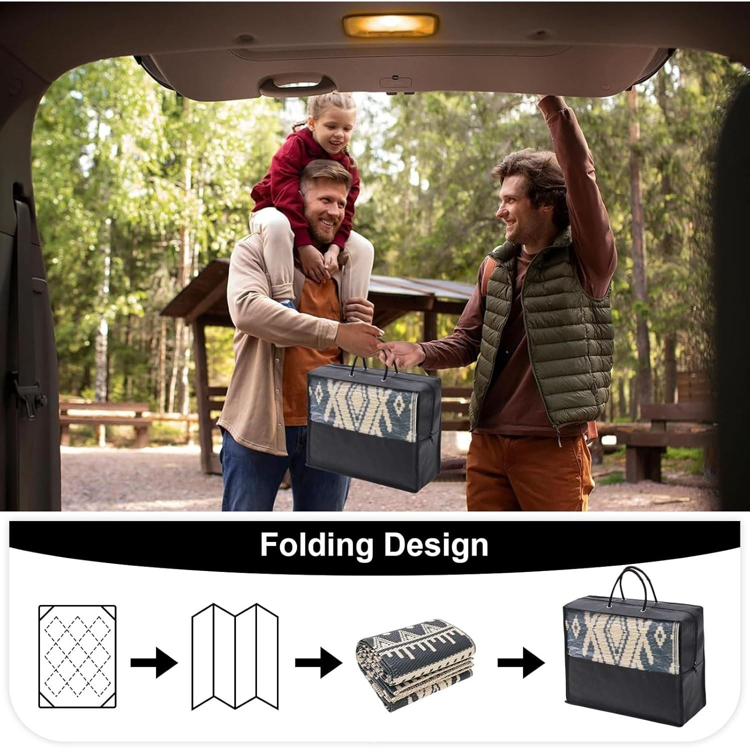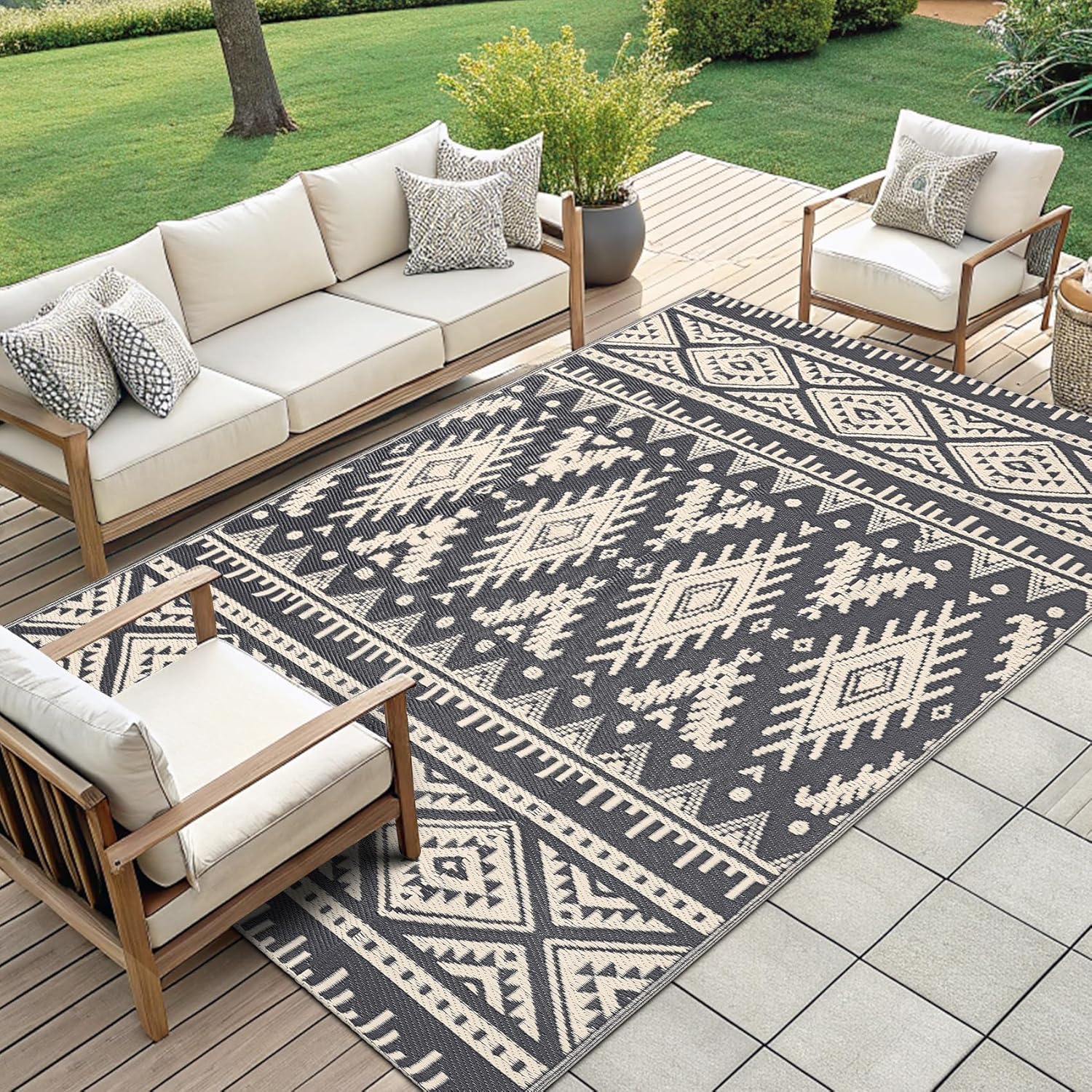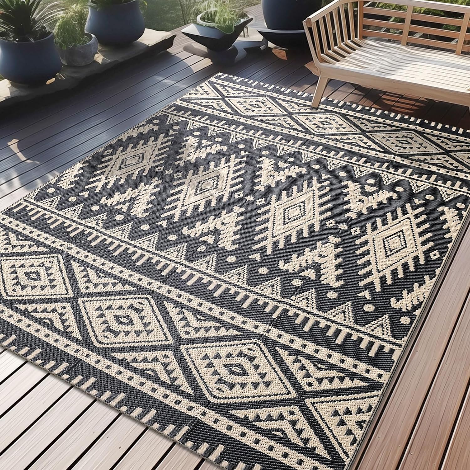 • REVERSIBLE & PORTABLE: This outdoor patio rug boasts dual-sided patterns, providing versatile color options and extended durability. Complete with a handy carry bag, it's perfect for outdoor activities.