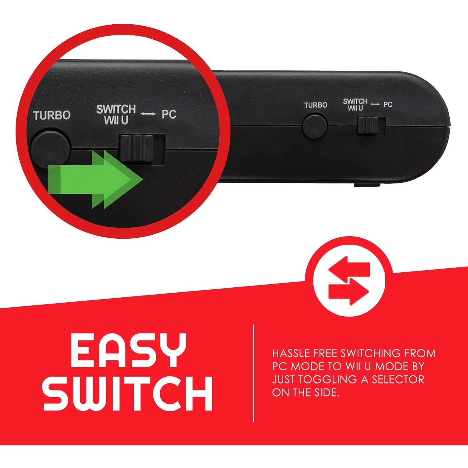 • ๐—˜๐—”๐—ฆ๐—œ๐—Ÿ๐—ฌ ๐—ฆ๐—ช๐—œ๐—ง๐—–๐—› ๐— ๐—ข๐——๐—˜๐—ฆ:With the easy-to-use Gamecube Controller Adapter, you can easily switch between modes by just toggling a selector on the side. Get a leg up on your opponent, in all three modes: PC mode, Wii U mode, and Nintendo Switch mode!