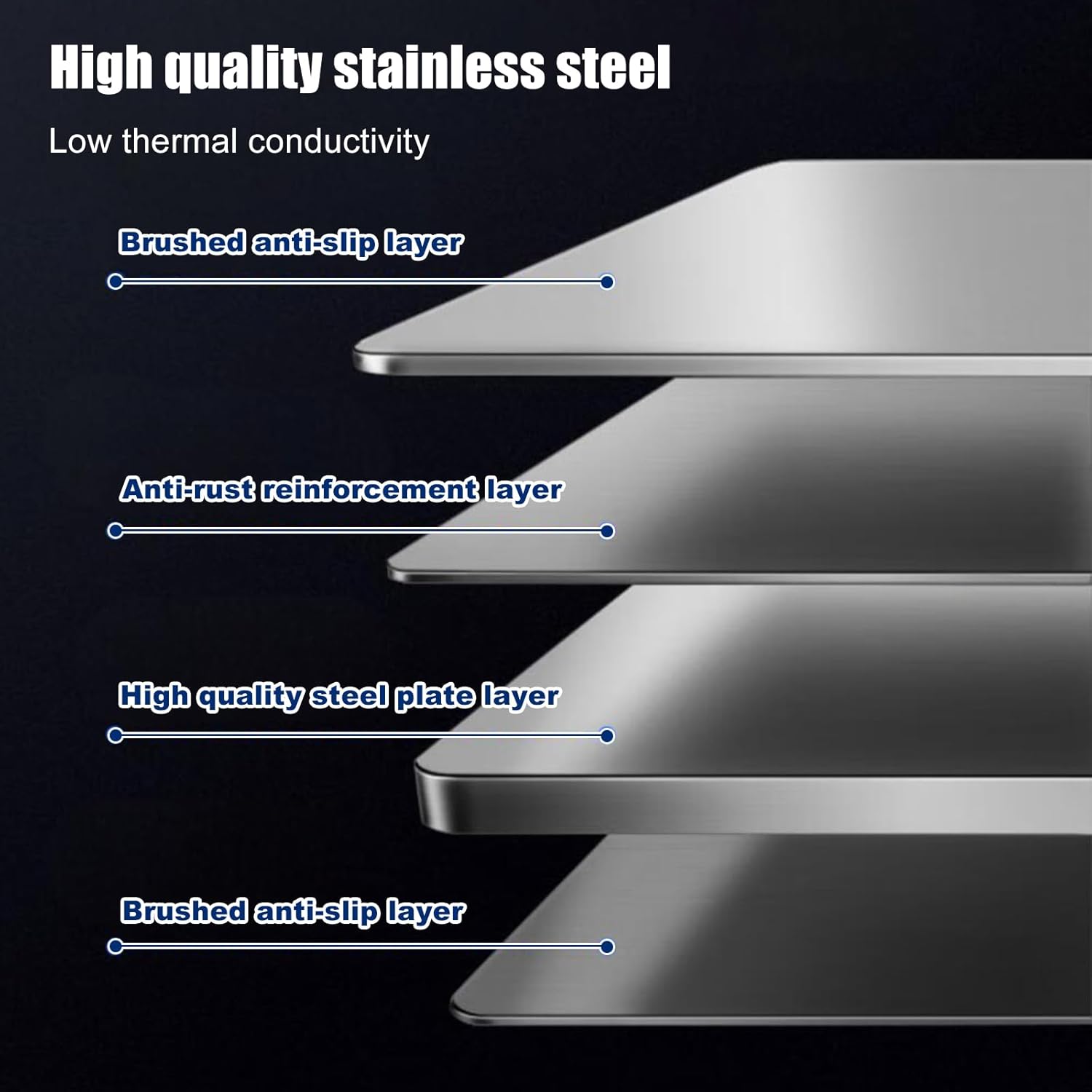 - 【Edge Protection】Each edge is protected with silicone to prevent the sharp stainless steel from scratching your hands, and the edges are prohibited from directly contacting the flame, which may produce smoke.