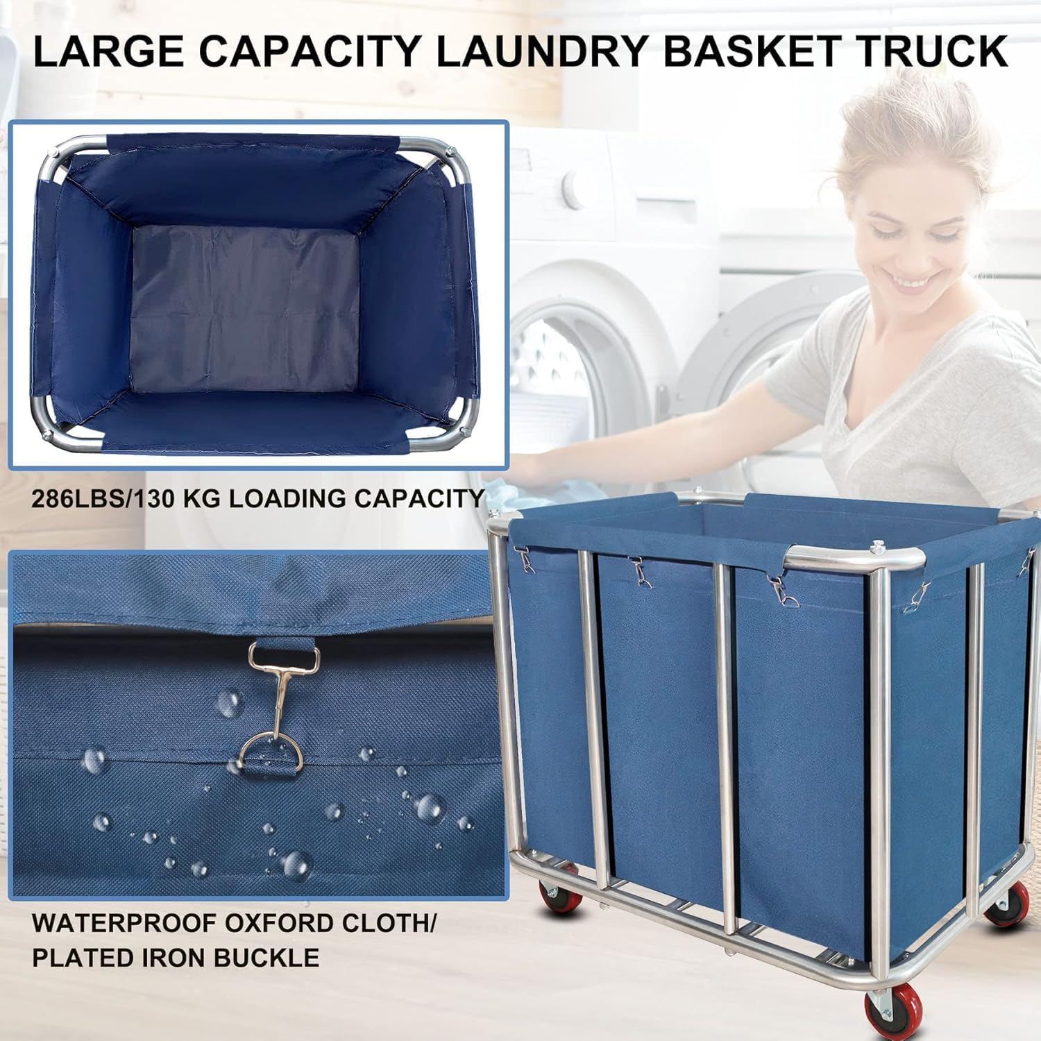 - [Sturdy Stainless Steel Laundry Basket]-Graywlof industrial household laundry basket cart is made of waterproof Oxford cloth (moisture-proof) and stainless steel (durable). The bottom has 4 4-inch wheels. The large opening and deep basket are very suitable for putting clothes, towels, and blankets. Delivery of sheets and quilts to the laundry room.Also great for grocery storage and shipping