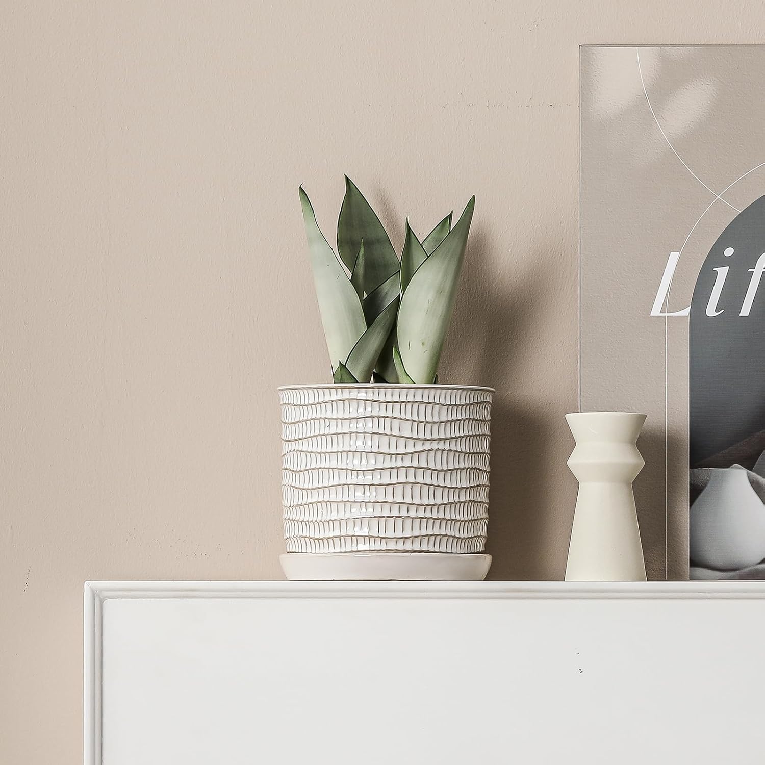 - Exquisite Design: This ceramic flower pot features delicate wave-like relief design, giving it a luxurious and refined feel. The creamy white texture adds an elegant touch, perfectly blending modern and classic elements.