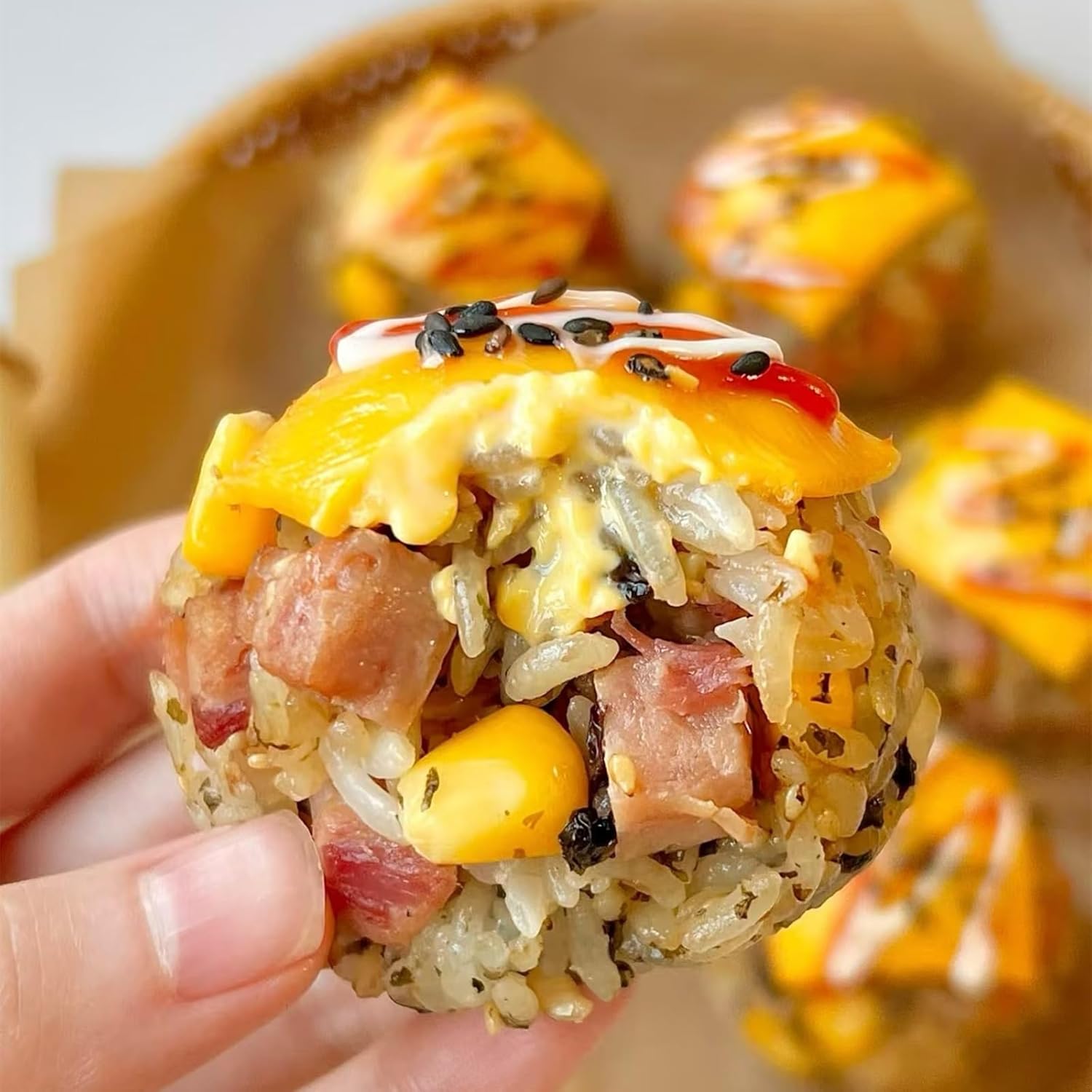 - The ingredients are varied and delicious: tired of the same rice ball taste? This machine gives you unlimited creative space! Whether it is the classic meat floss, sweet corn, tender shrimp, or the unique flavor of teriyaki chicken, salty bacon, can be your filling choice. As long as you want, you can match your own taste to meet the different preferences of the whole family.