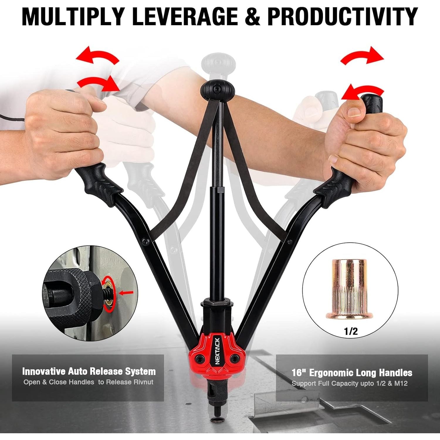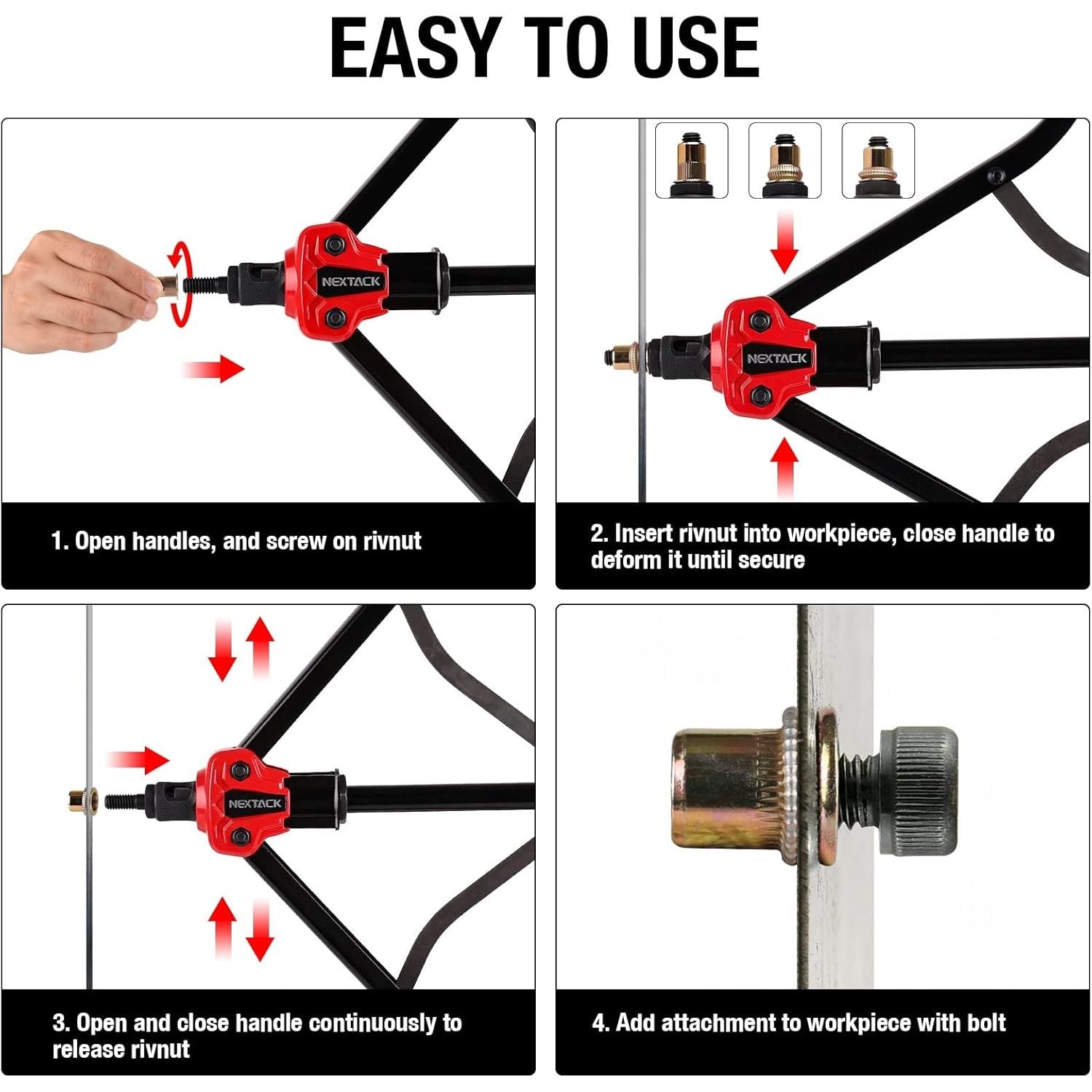 - 【Innovative Upgraded Design】One squeeze, and you're done. The used nutsert can be released quickly by opening and closing handles continuously rather than screwed out manually.