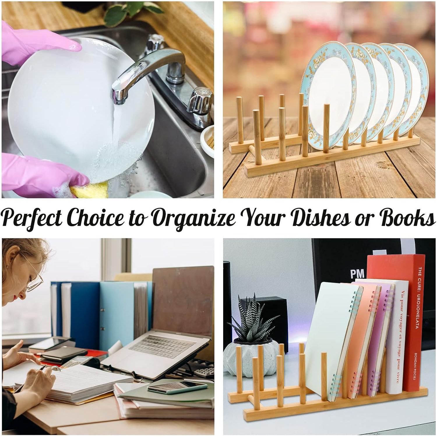 - 【Multiple Function】Bamboo drying rack can use as a dish rack for storage of cutting boards or plates, or to organize cups, or to hold lids or even books/ tablets/ laptop/ etc.